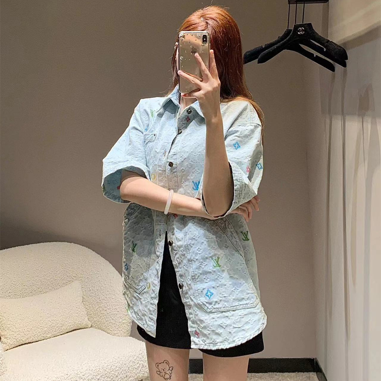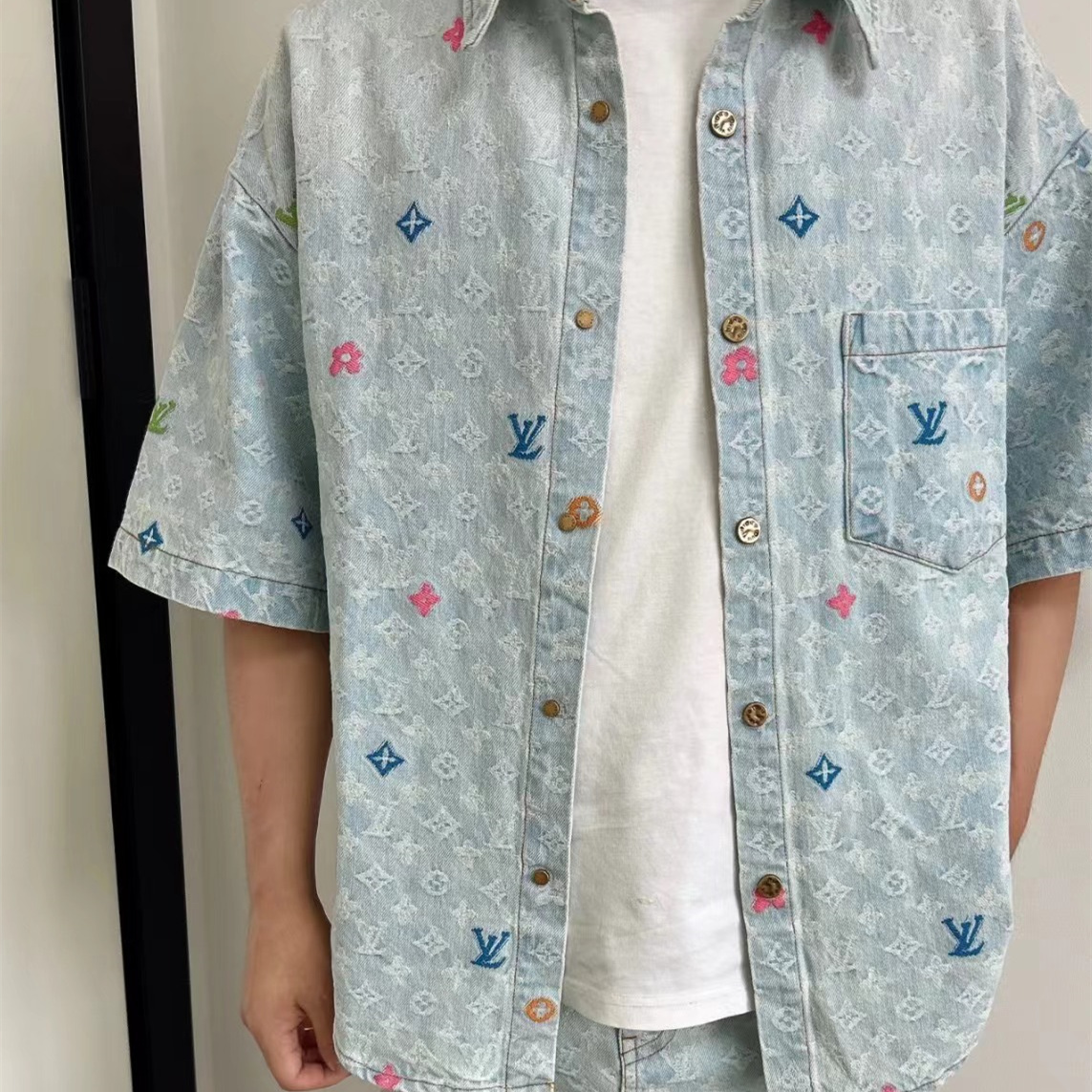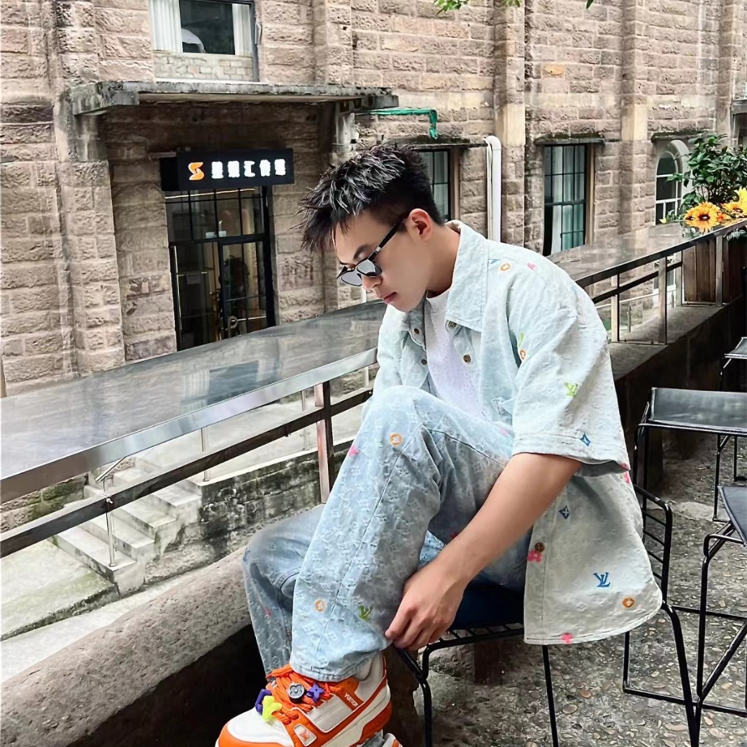 高仿LV*1AFR0064糖果繡花水泥牛仔套裝