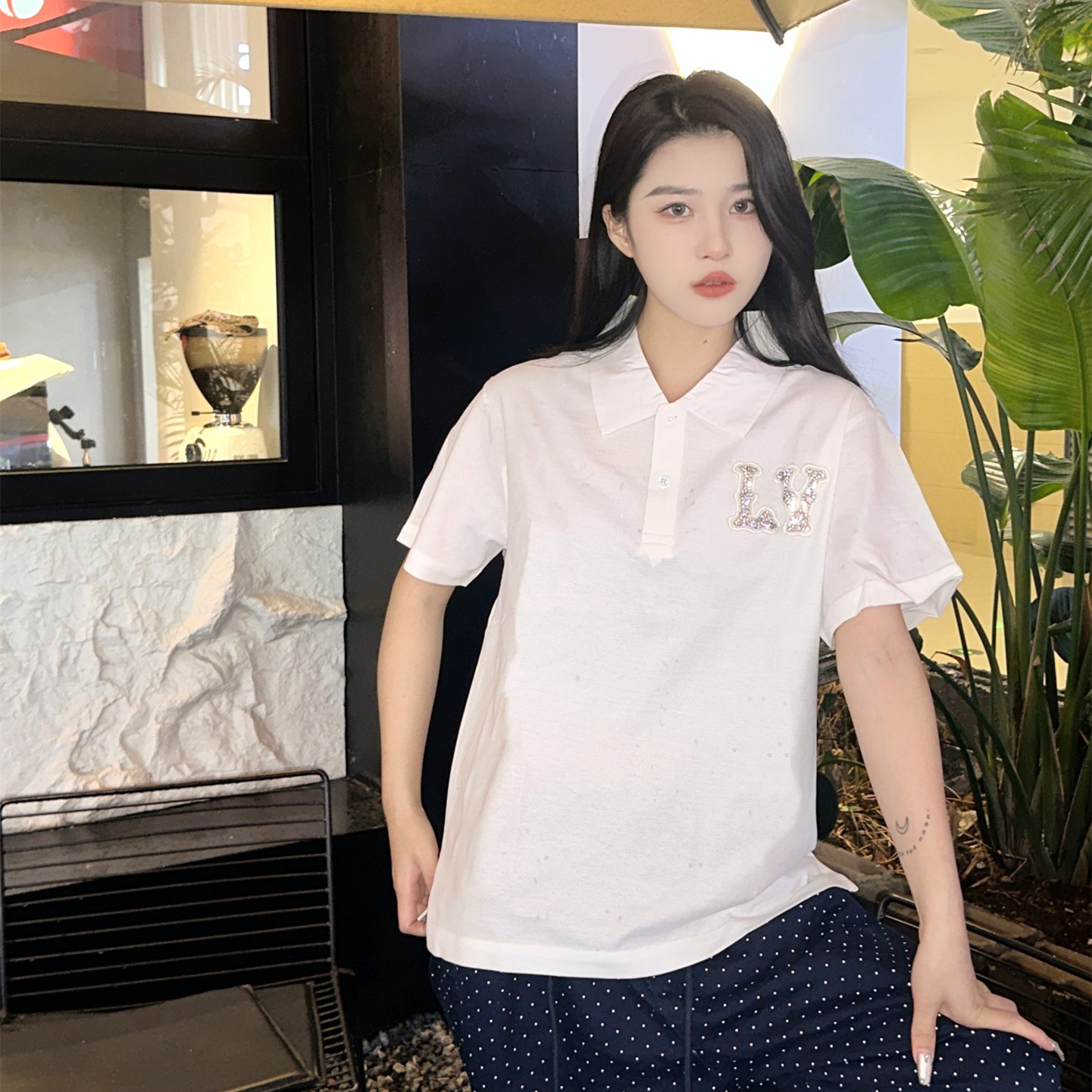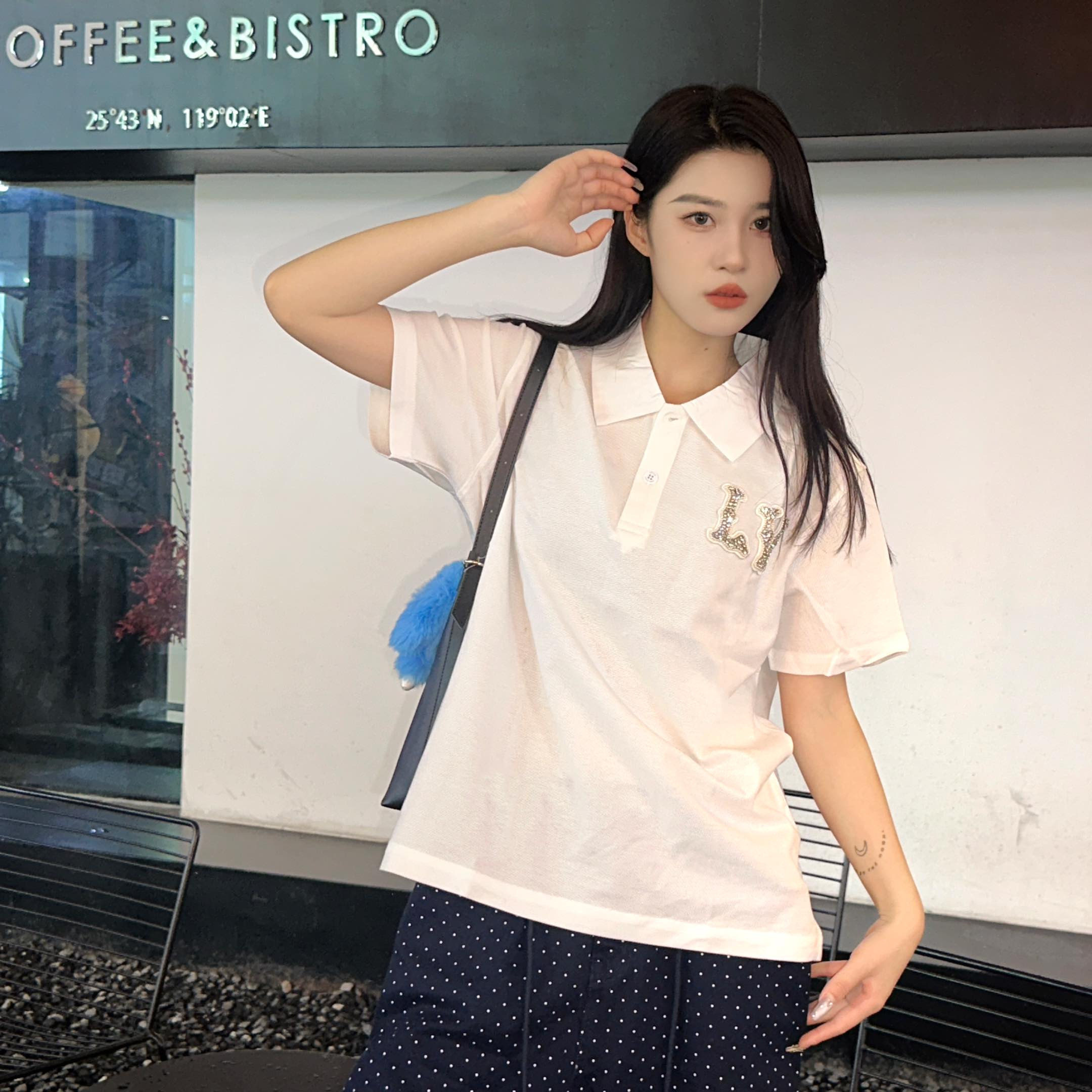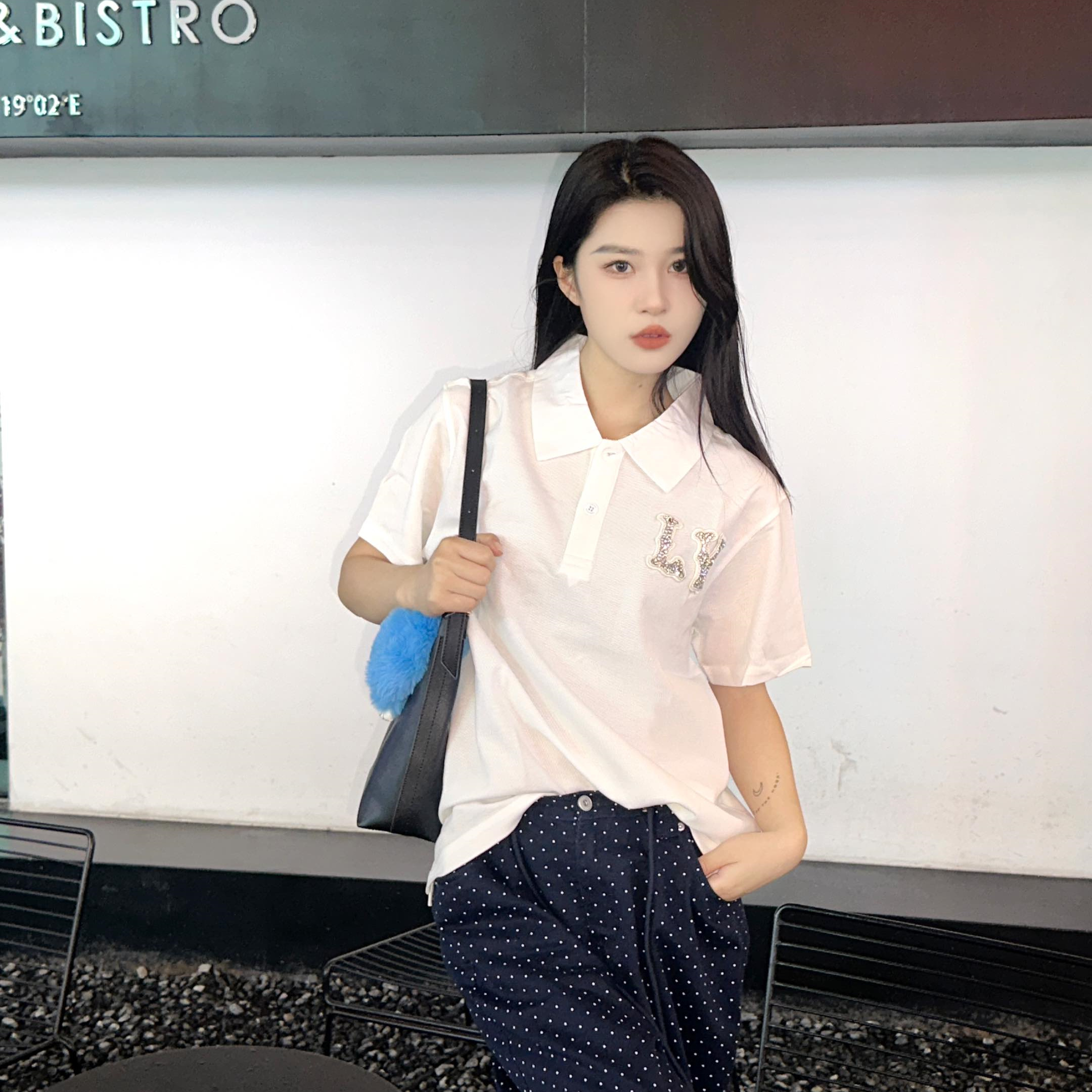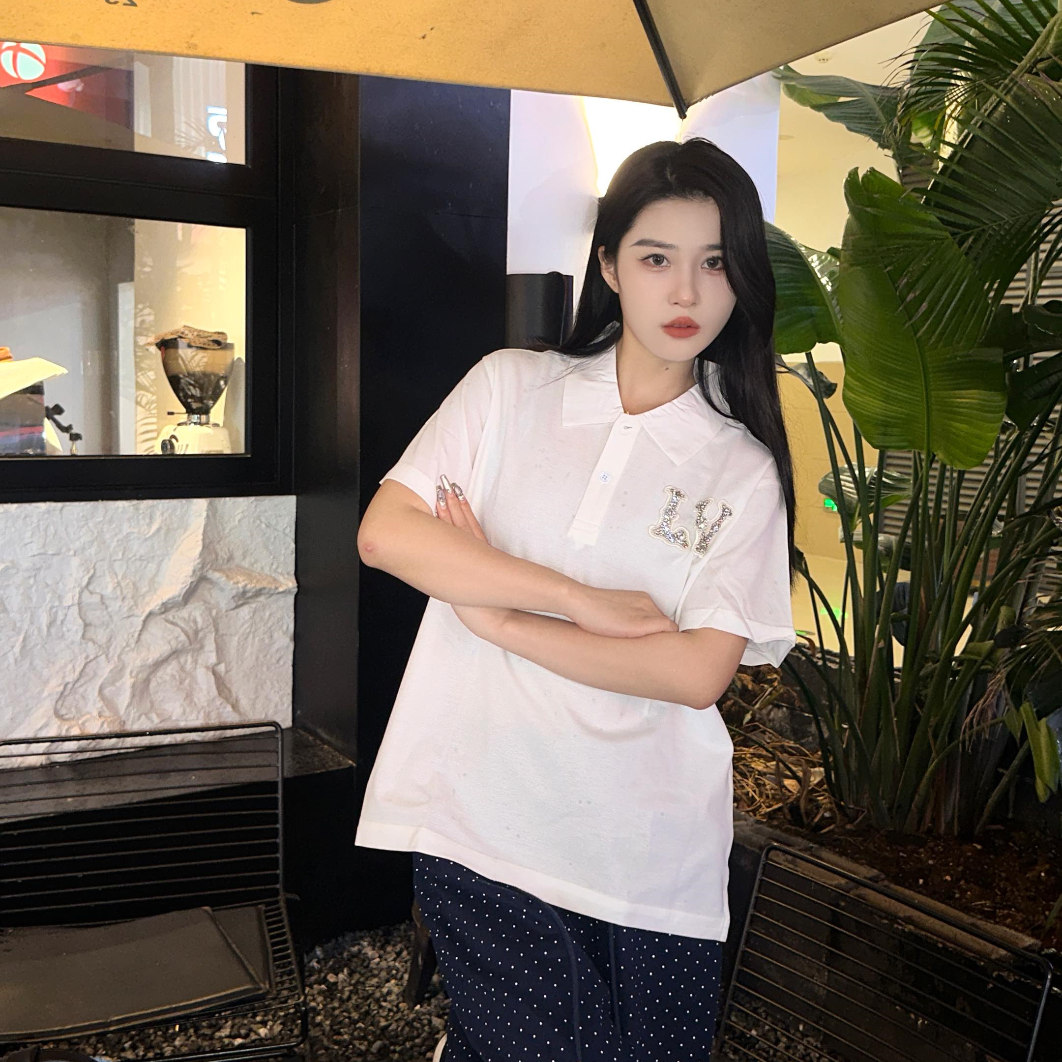 高仿LV*1AFR0069刺繡貼飾POLO衫白色