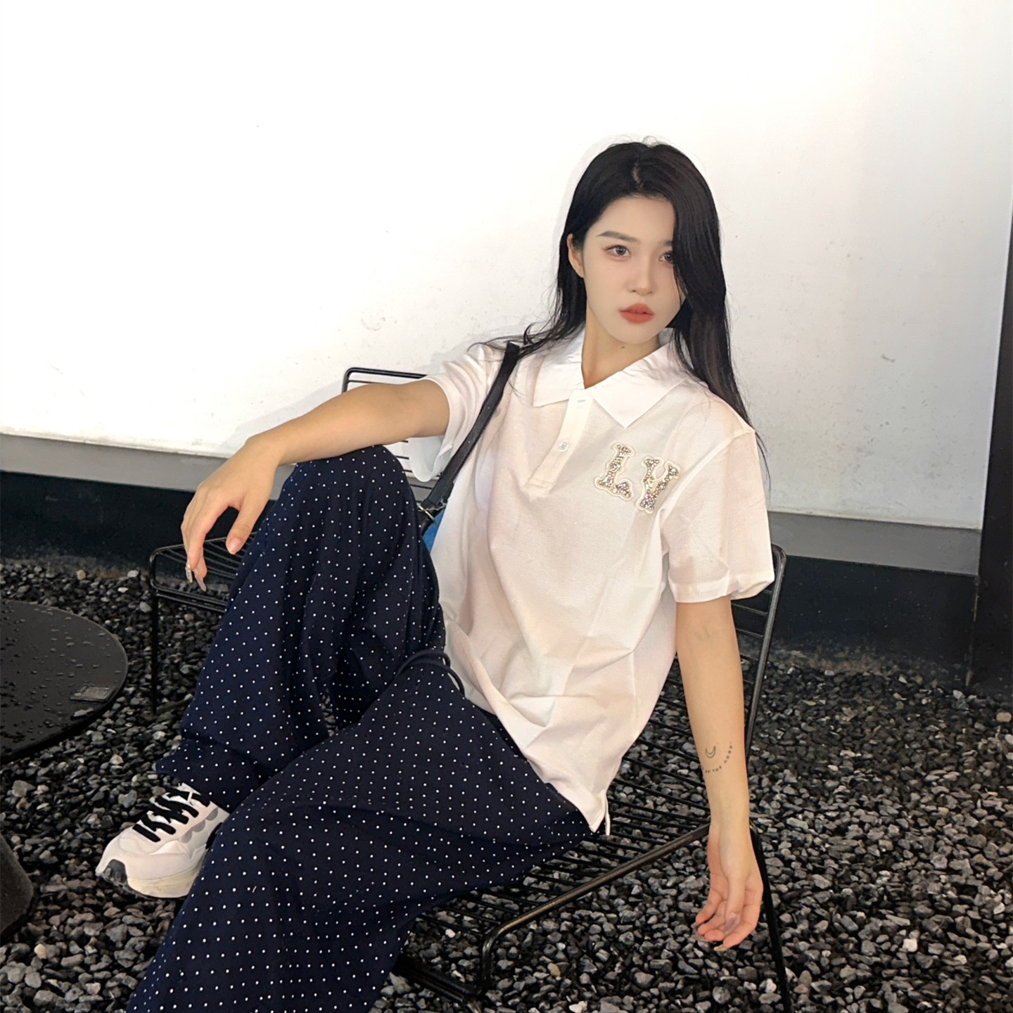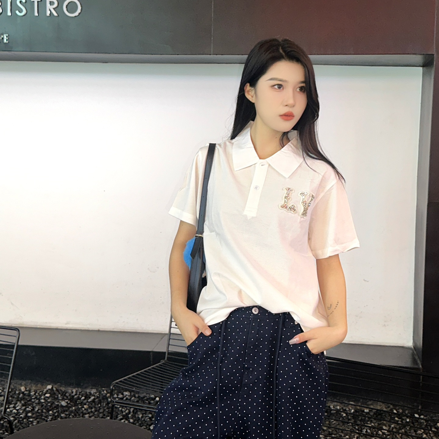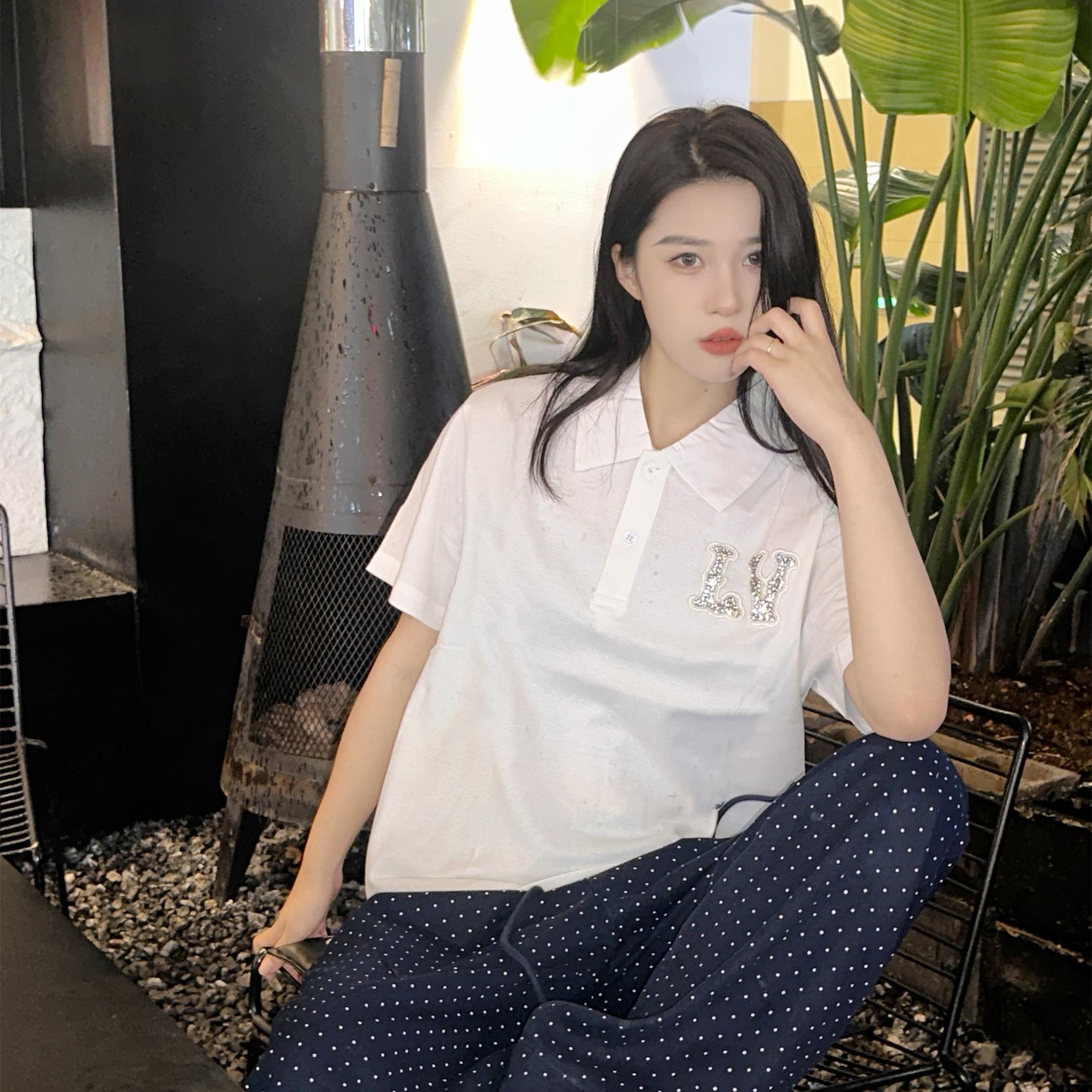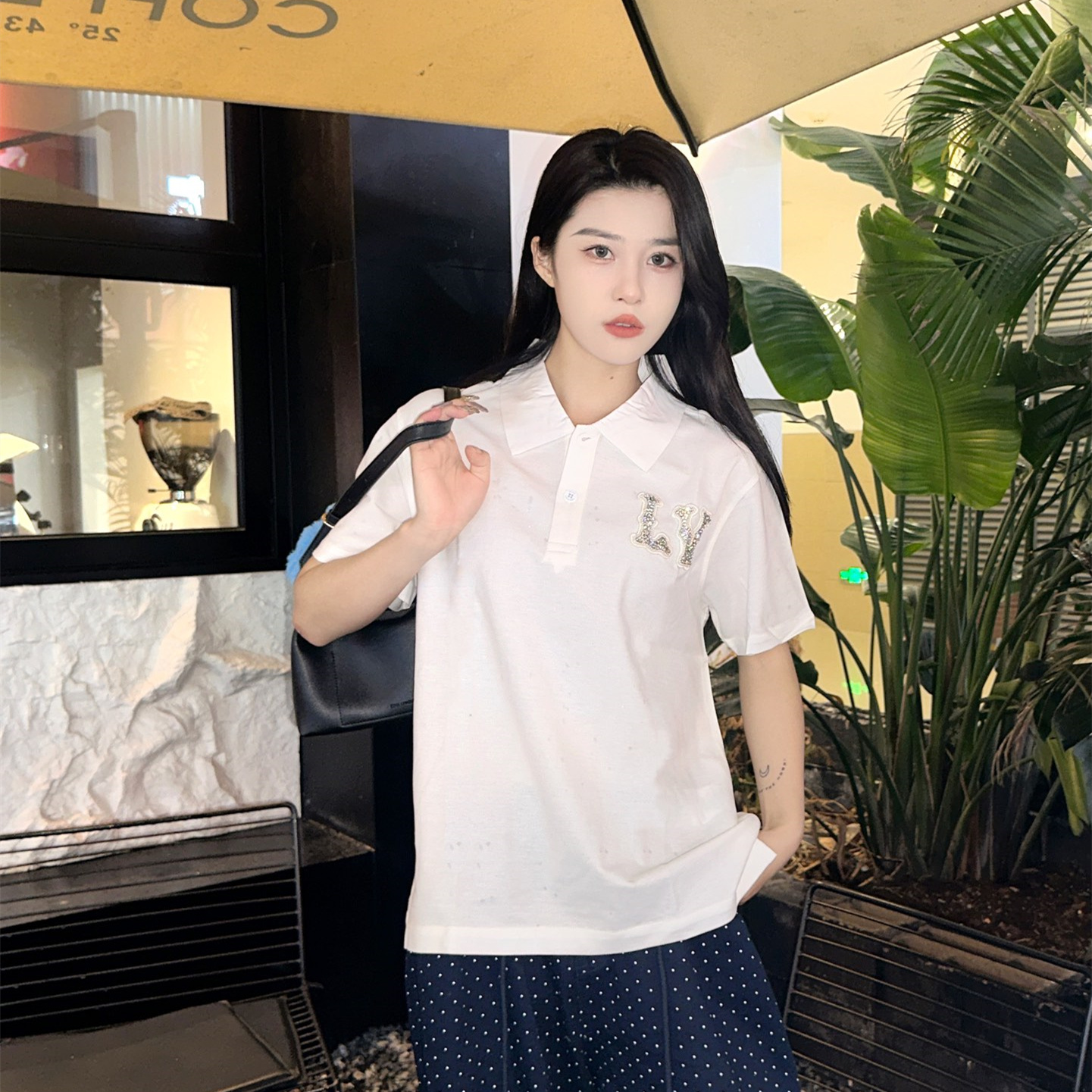高仿LV*1AFR0069刺繡貼飾POLO衫白色