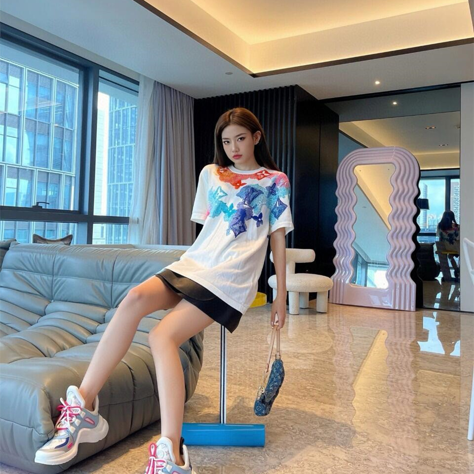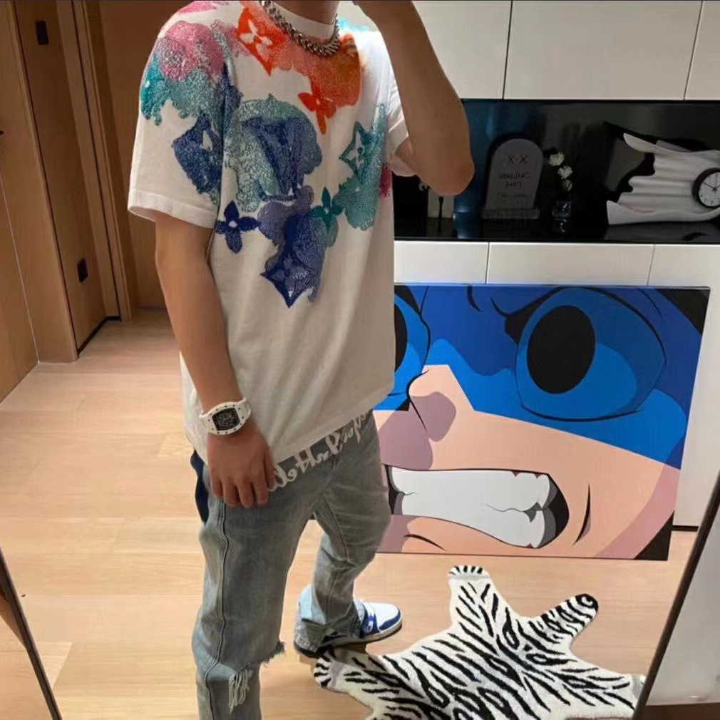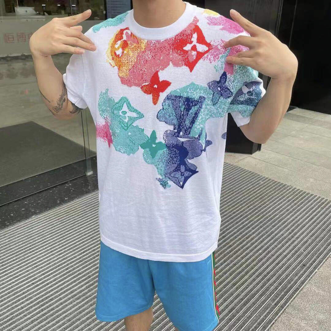 高仿LV*SS21系列1A8QWA水墨渲染刺繡T恤白色