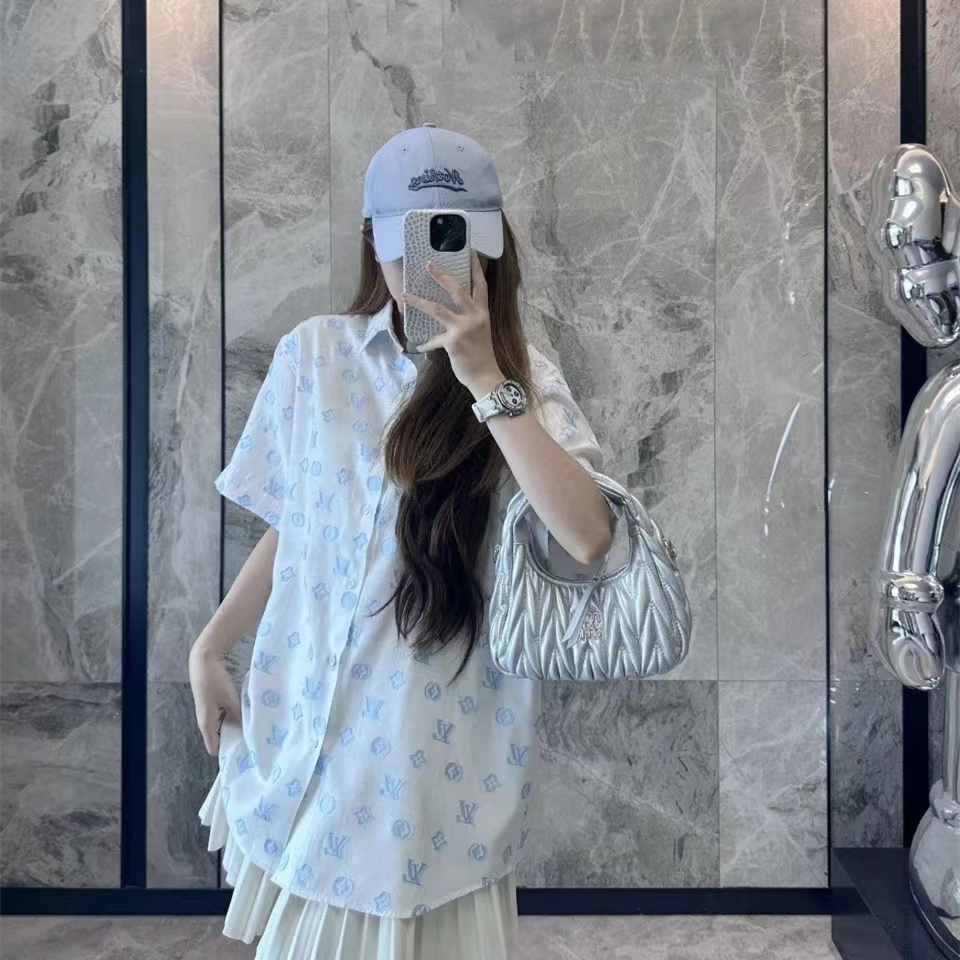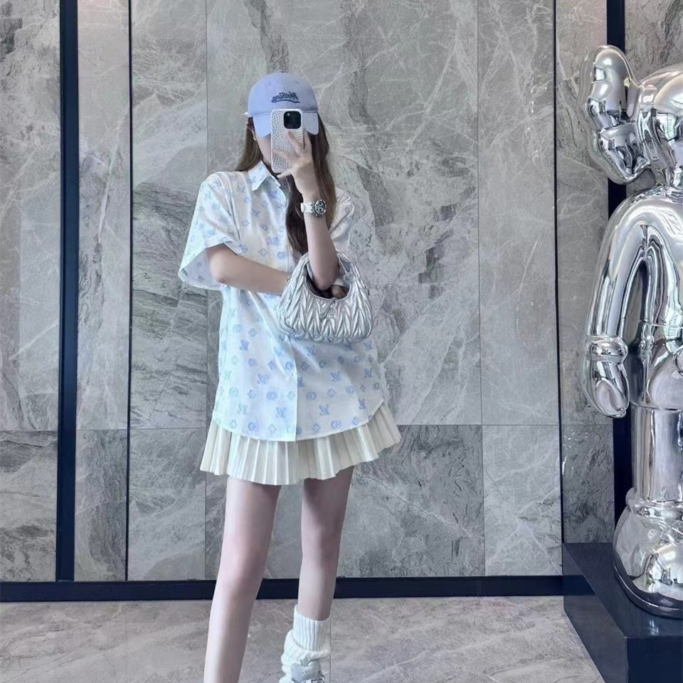 高仿LV*SS23系列1ABJS4滿印LOGO短袖襯衫白色