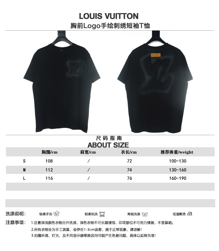 高仿LV*SS24系列1AFR0014手繪刺繡短袖黑色