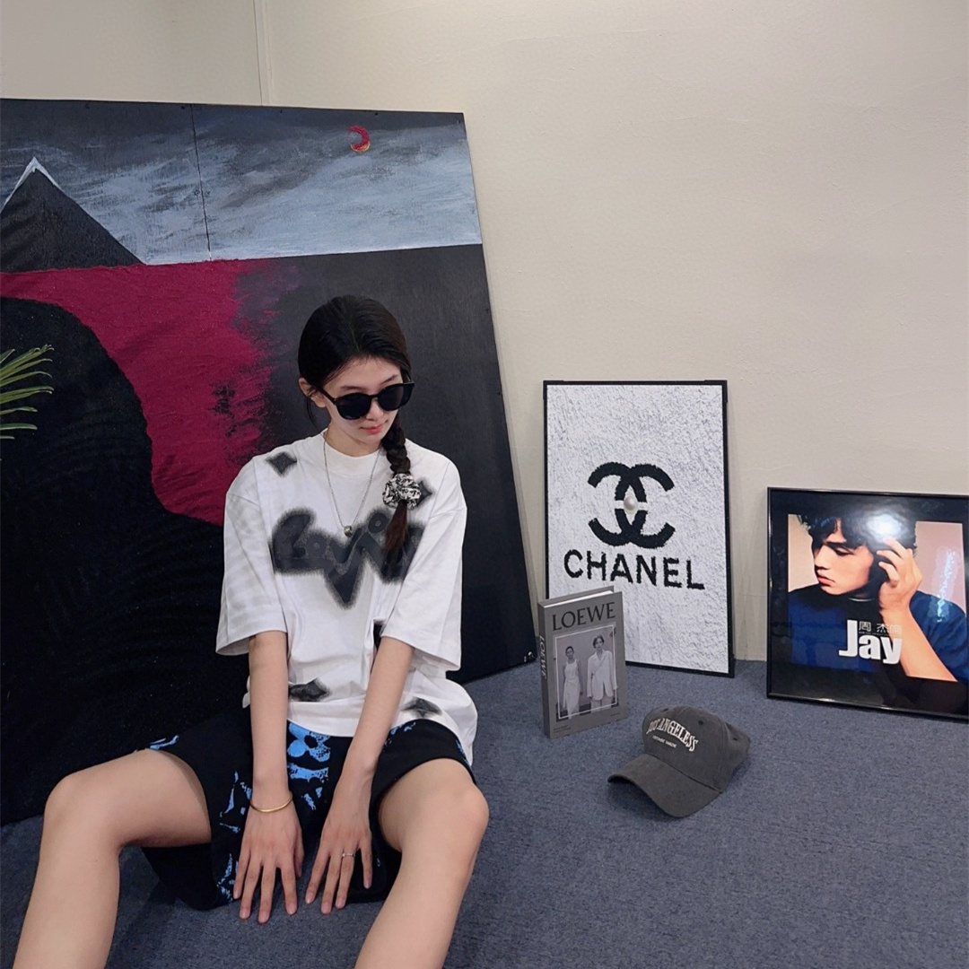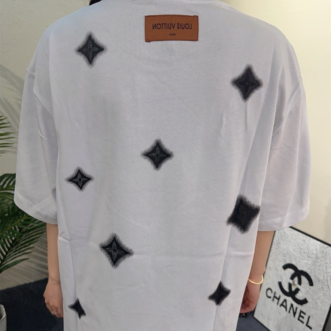 LOUIS VUITTON/路易威登四葉草水墨印花短袖T恤,原版1:1定制定染純棉面料,多次調整才能達到與原版一致的滿印效果.區別市場的一坨沒層次感的印花,頂級版本,男女同款.
