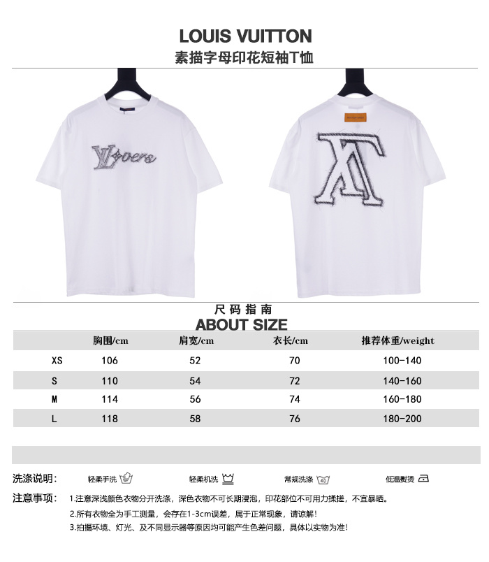 Louis Vuitton路易威登24ss系列素描字母印花短袖T恤,頂級高版本數碼印花260克60支新疆長絨棉雙紗面料, 男女同款.胸前高清數碼印花清晰度極高,厚板立體,特供面料.加上緊密紡紗工藝又使面料光滑緊密得到整體面料的高級感,大牌專業提供,質量絕對保證.衣服順滑使整體高透氣和柔軟性的質感更加凸顯,飽滿的棉質感引起極度舒適,這件T恤非常適合炎炎夏日,低調而不失時尚感,耐洗性能高.久整件衣服的做工完美體現出品牌的設計理念和精良的制作工藝.
