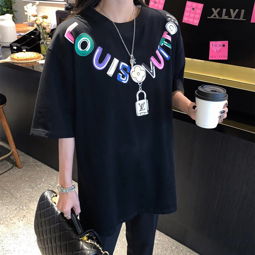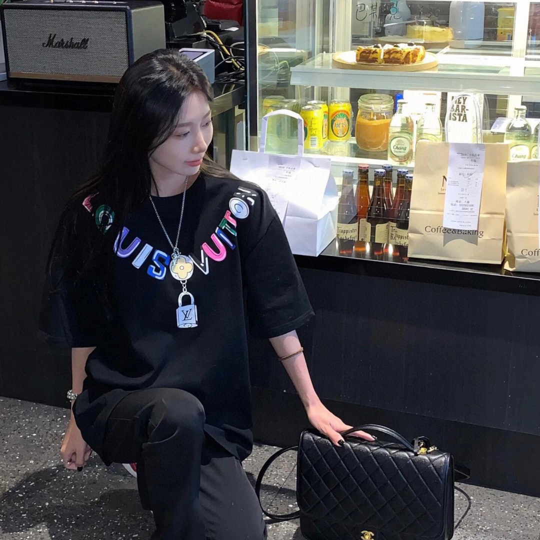 高仿LV*1AFR0026彩色項鏈LOGOT恤黑色