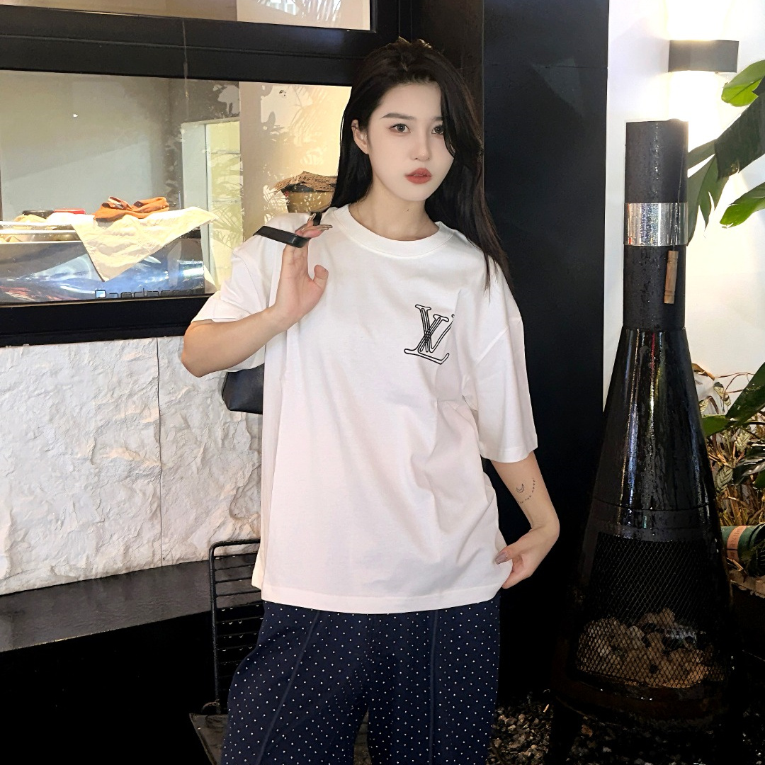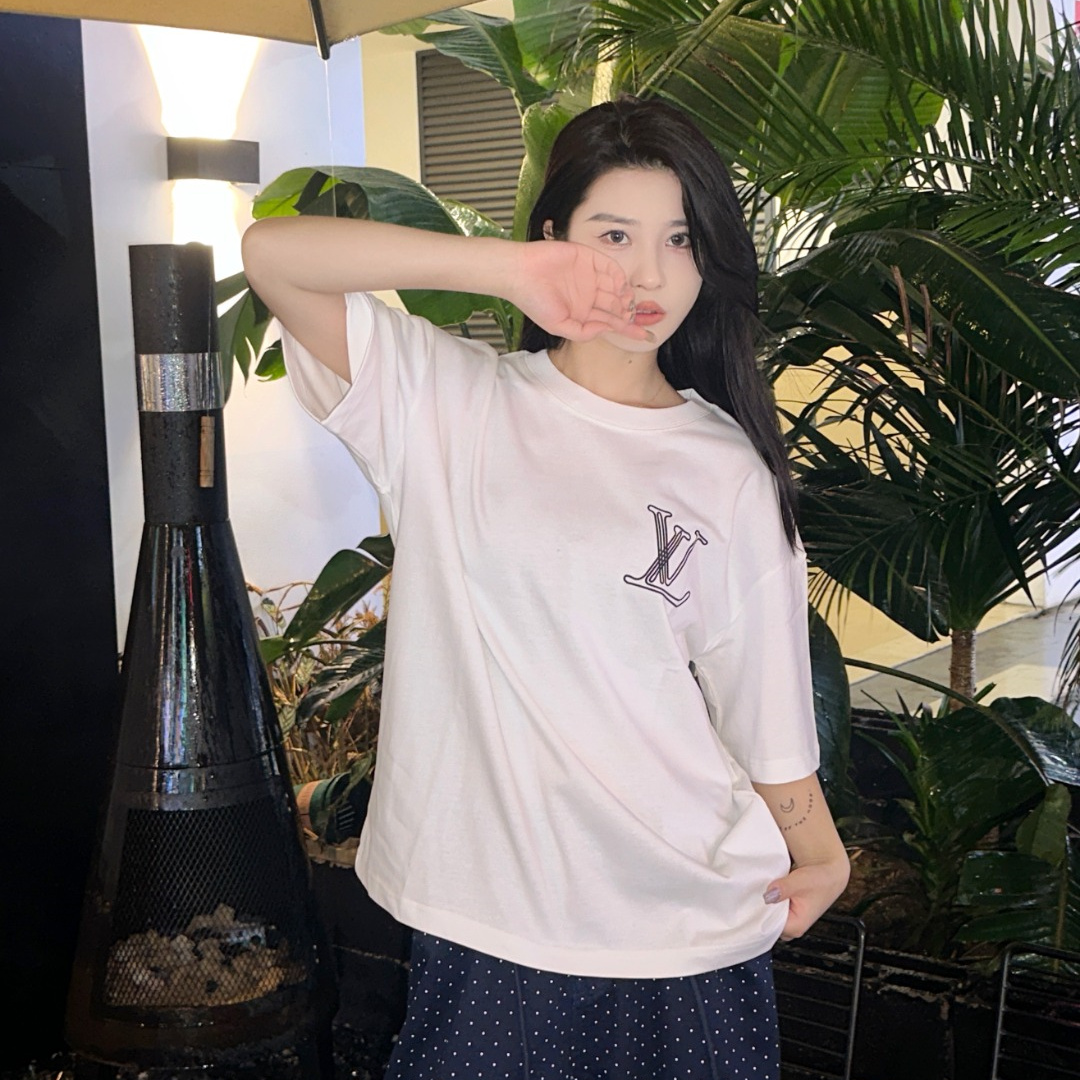 高仿LV*1AFR0027線條LOGOT恤白色