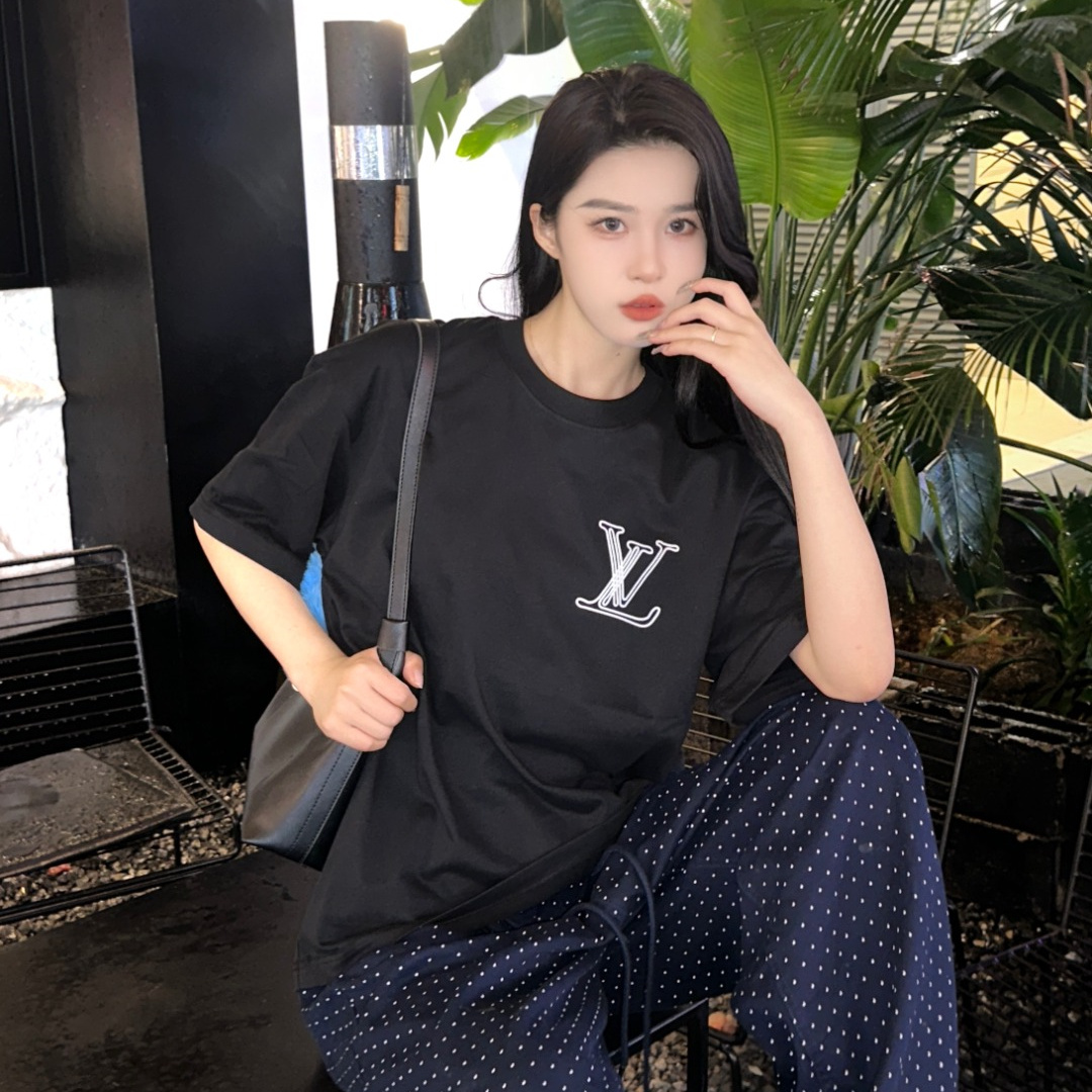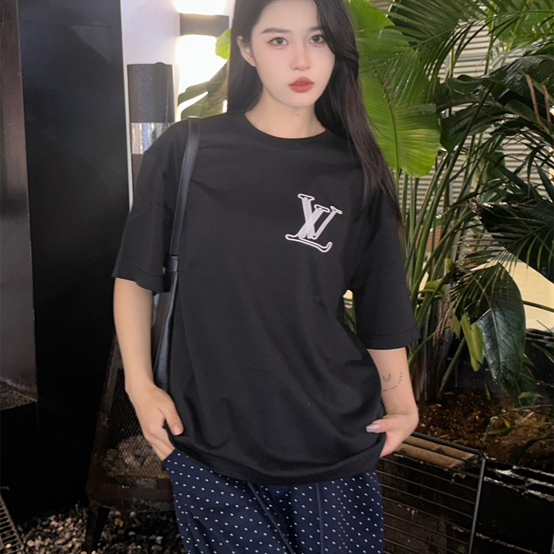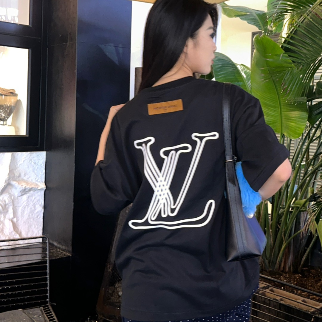 高仿LV*1AFR0028線條LOGOT恤黑色