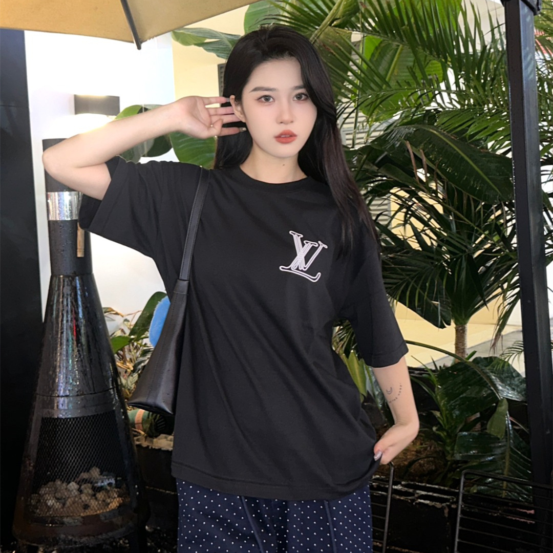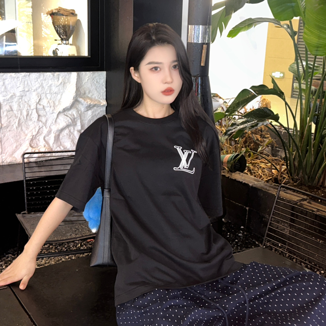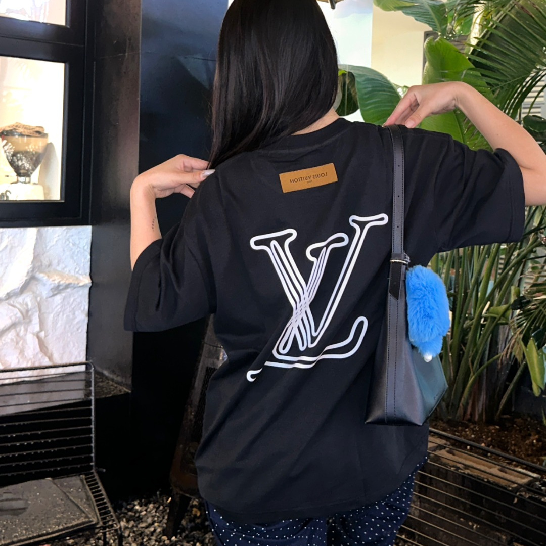 高仿LV*1AFR0028線條LOGOT恤黑色