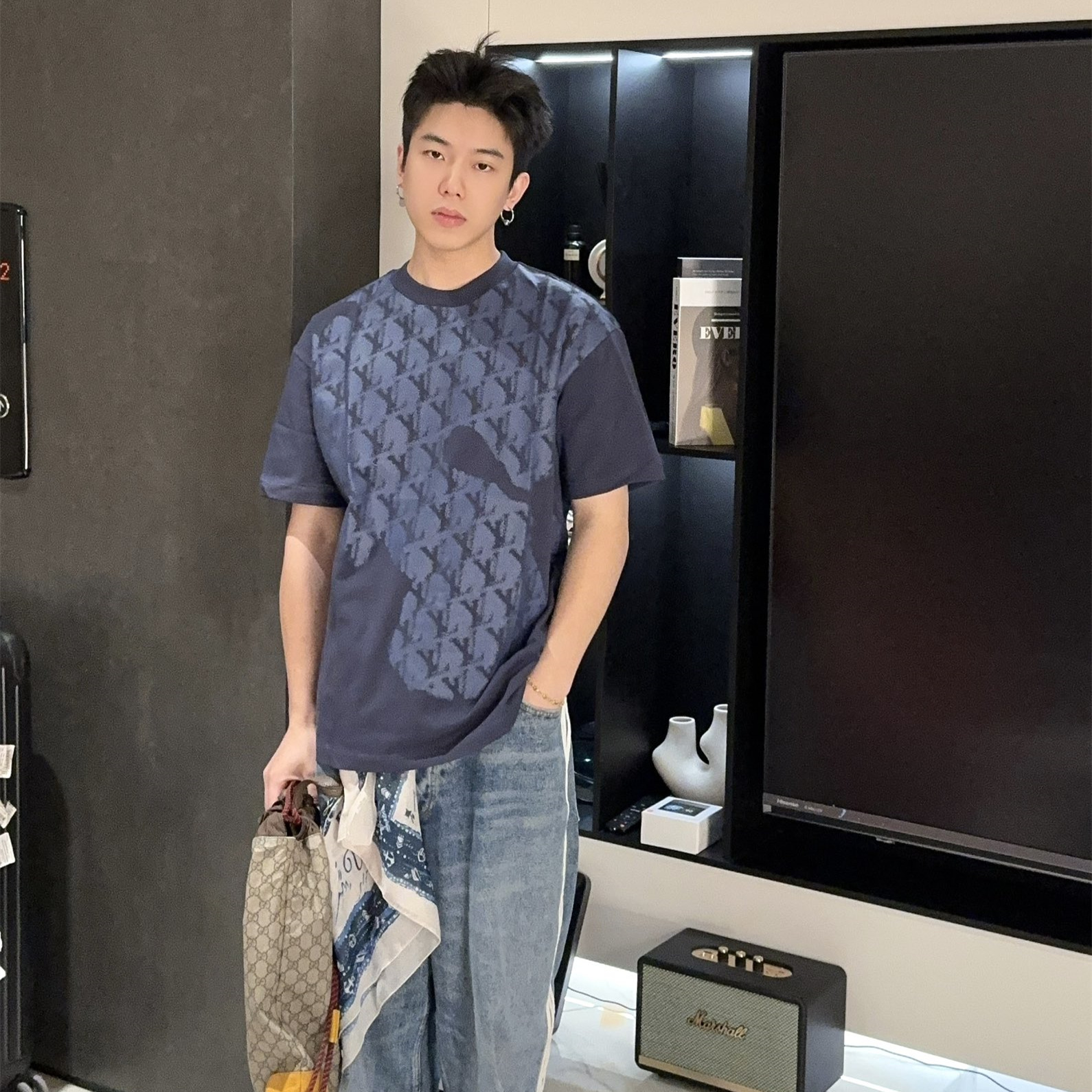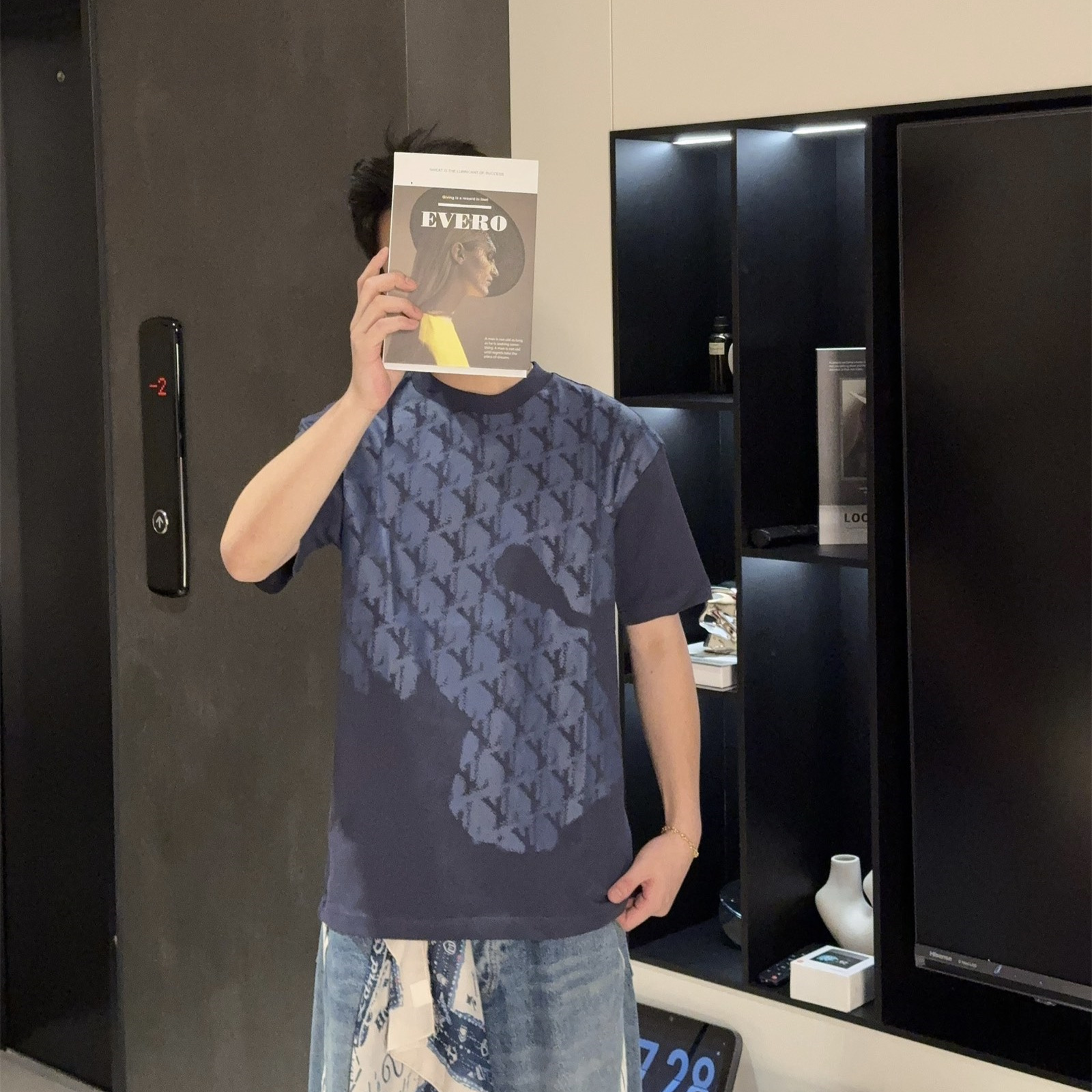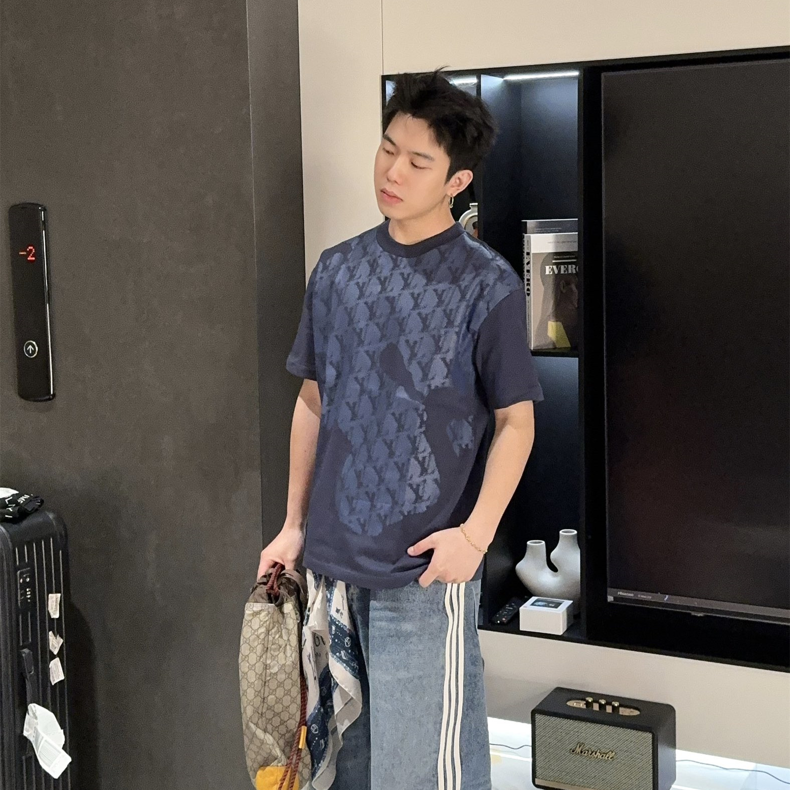 高仿LV*1AFR0030滿印塗層LOGOT恤藏藍