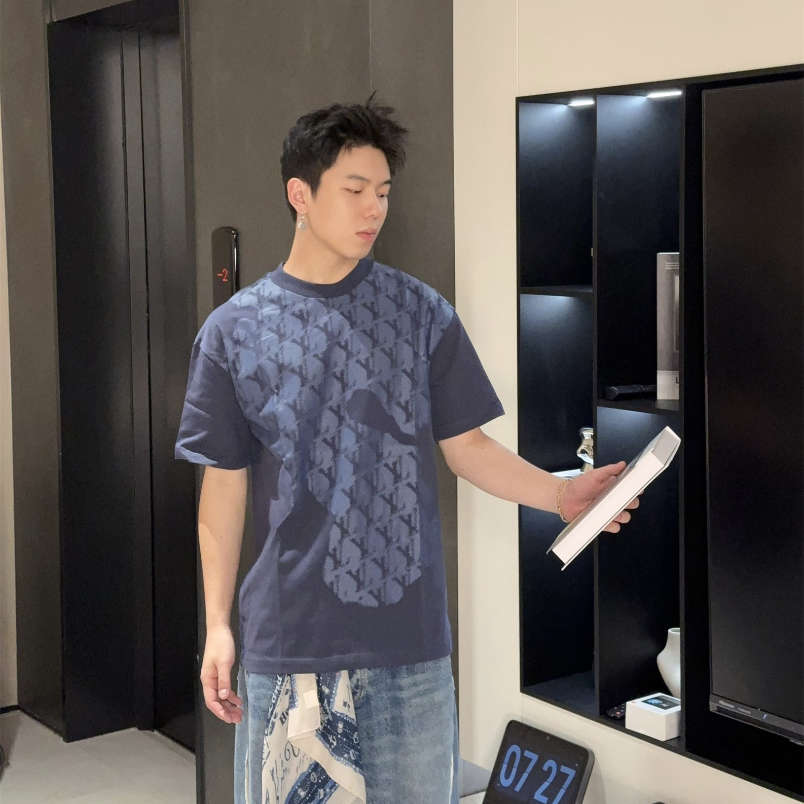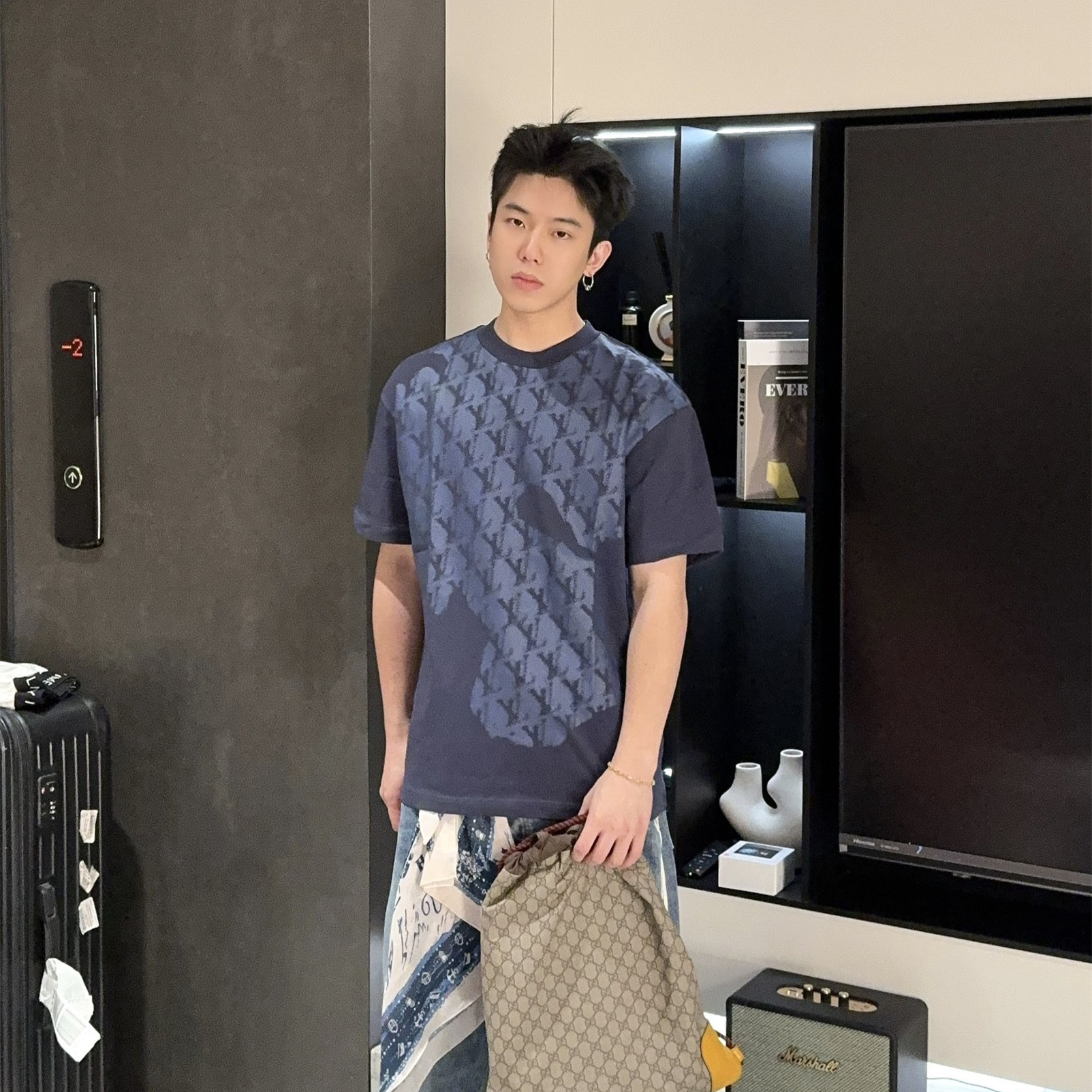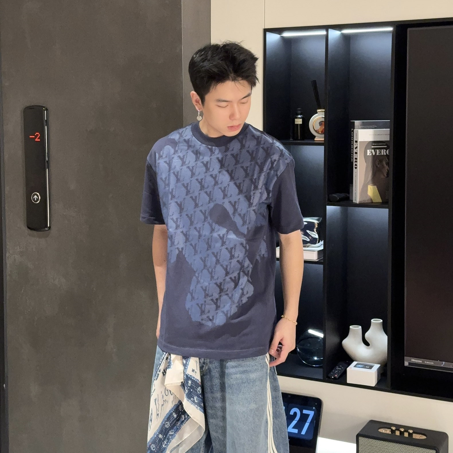 高仿LV*1AFR0030滿印塗層LOGOT恤藏藍