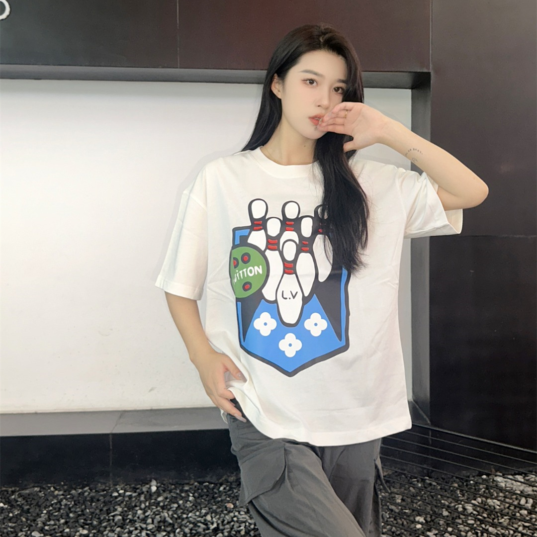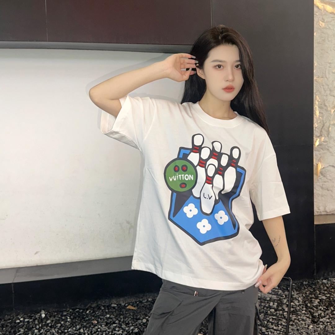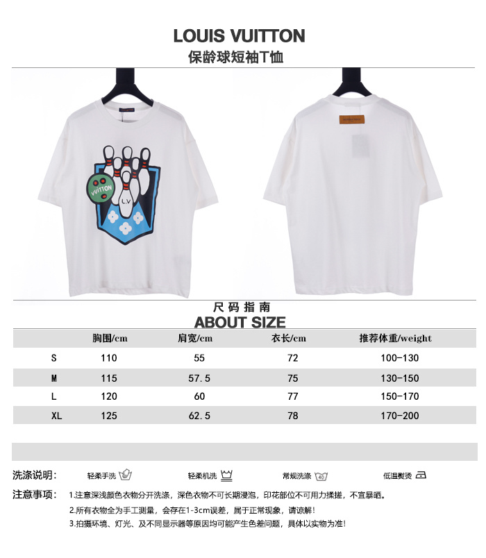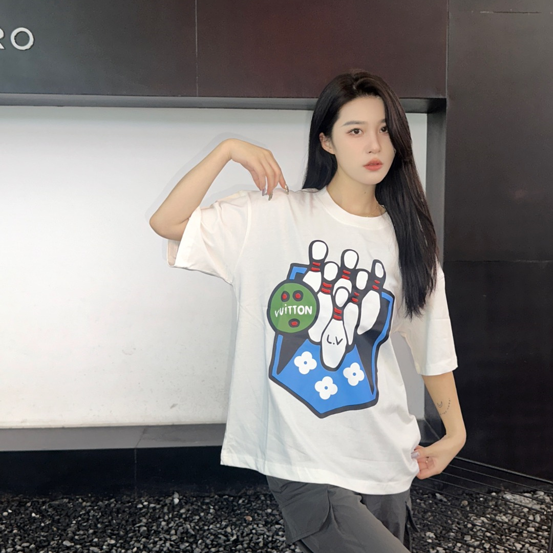 Louis Vuitton路易威登24SS保齡球短袖T恤.面料采用定制240g/26支特滑雙股精棉平紋高密無塵全棉布料,前幅高密度加厚,走線平整,代工品質,全套定制輔料.