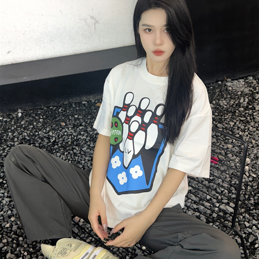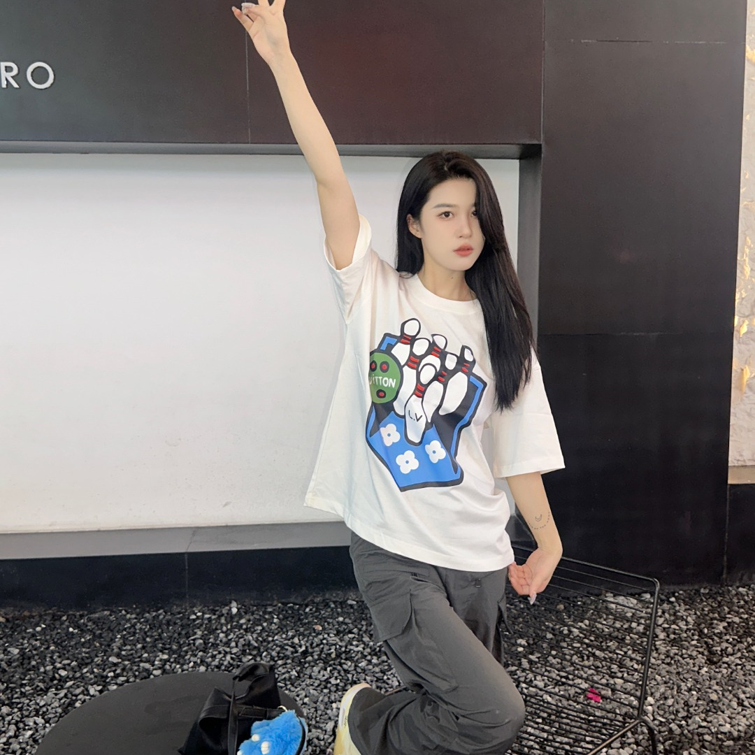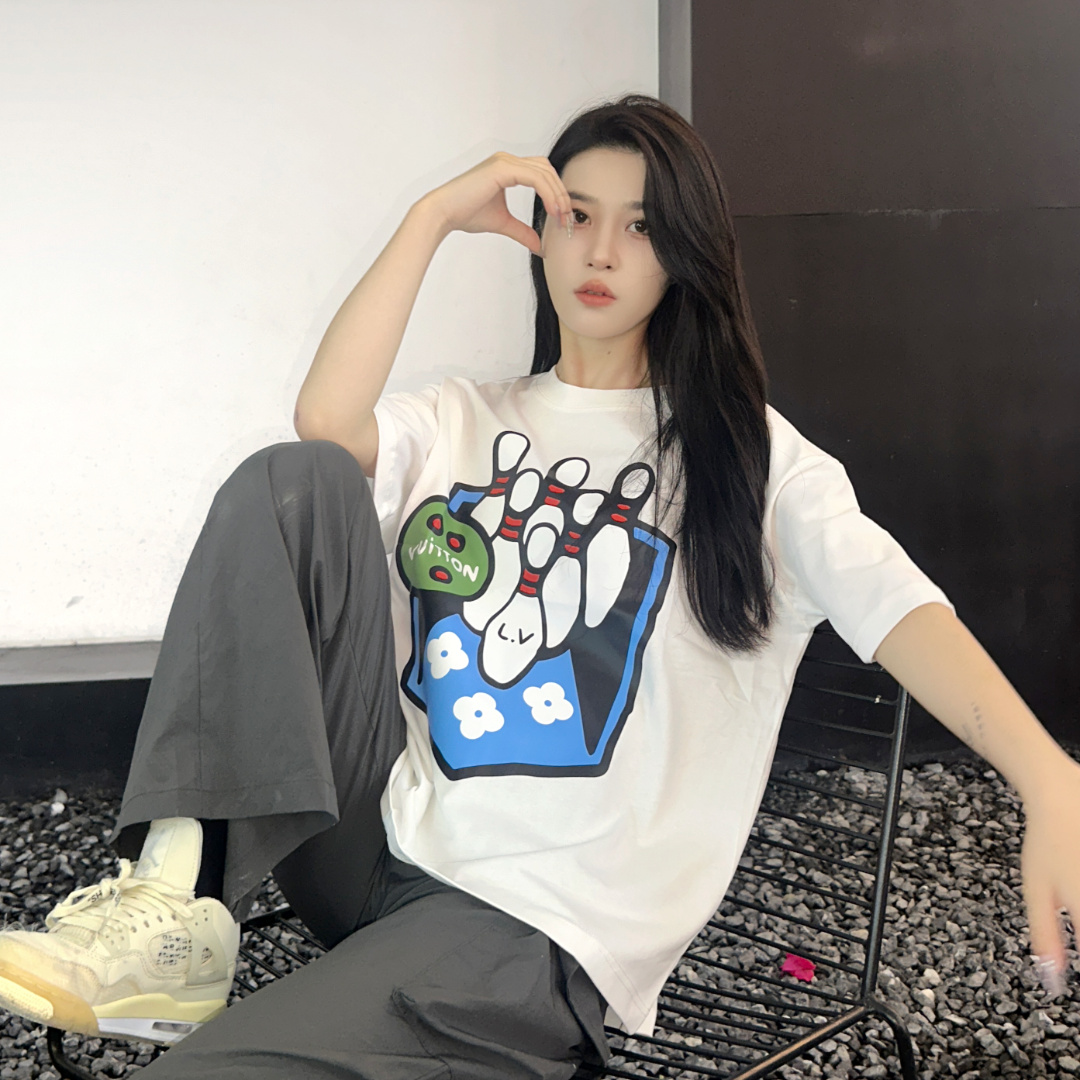 Louis Vuitton路易威登24SS保齡球短袖T恤.面料采用定制240g/26支特滑雙股精棉平紋高密無塵全棉布料,前幅高密度加厚,走線平整,代工品質,全套定制輔料.