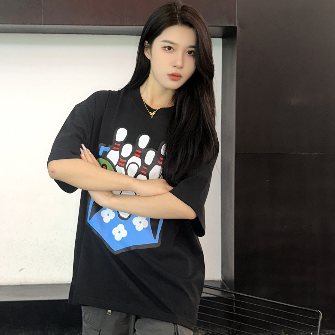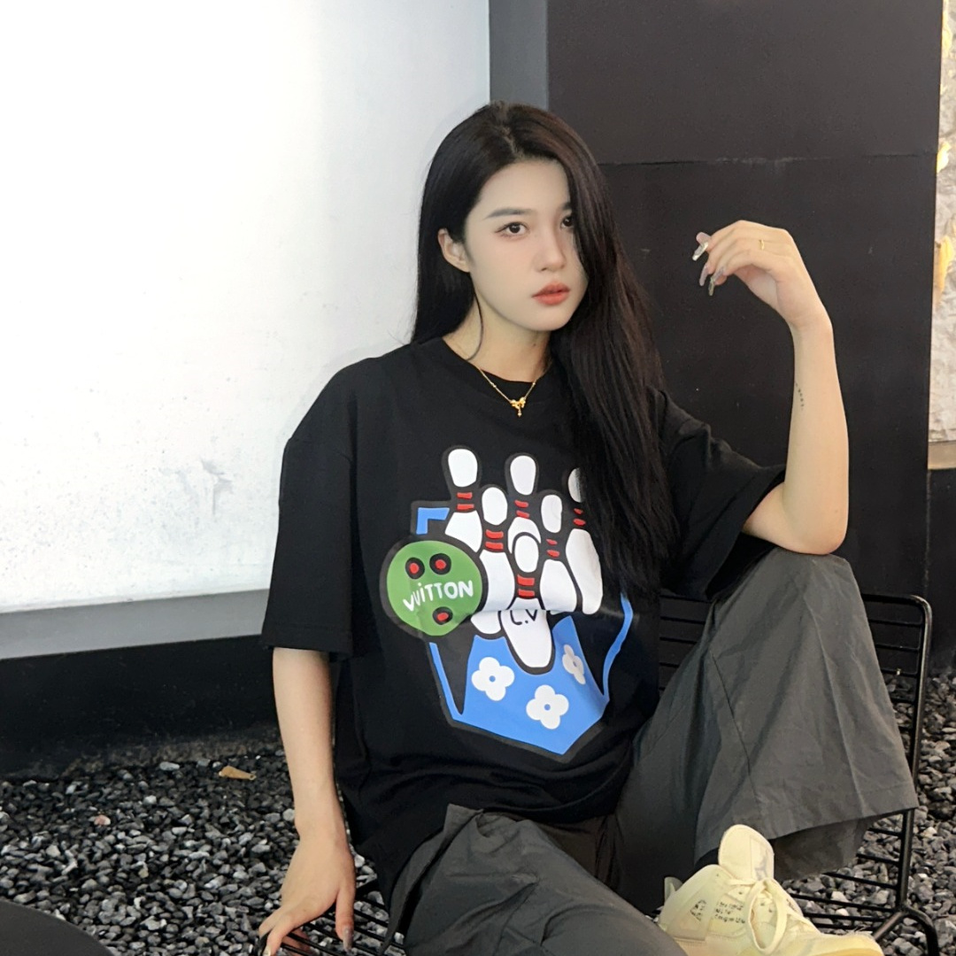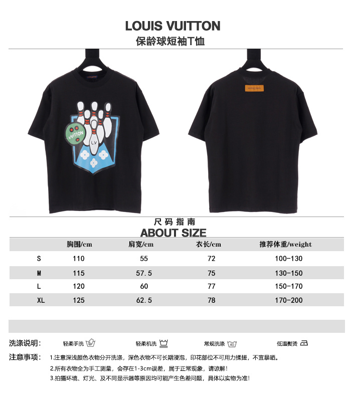 Louis Vuitton路易威登24SS保齡球短袖T恤.面料采用定制240g/26支特滑雙股精棉平紋高密無塵全棉布料,前幅高密度加厚,走線平整,代工品質,全套定制輔料.