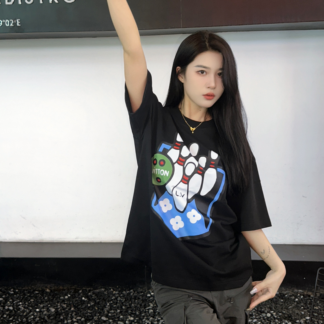 高仿LV*SS24系列1AFR0032保齡球塗層T恤黑色
