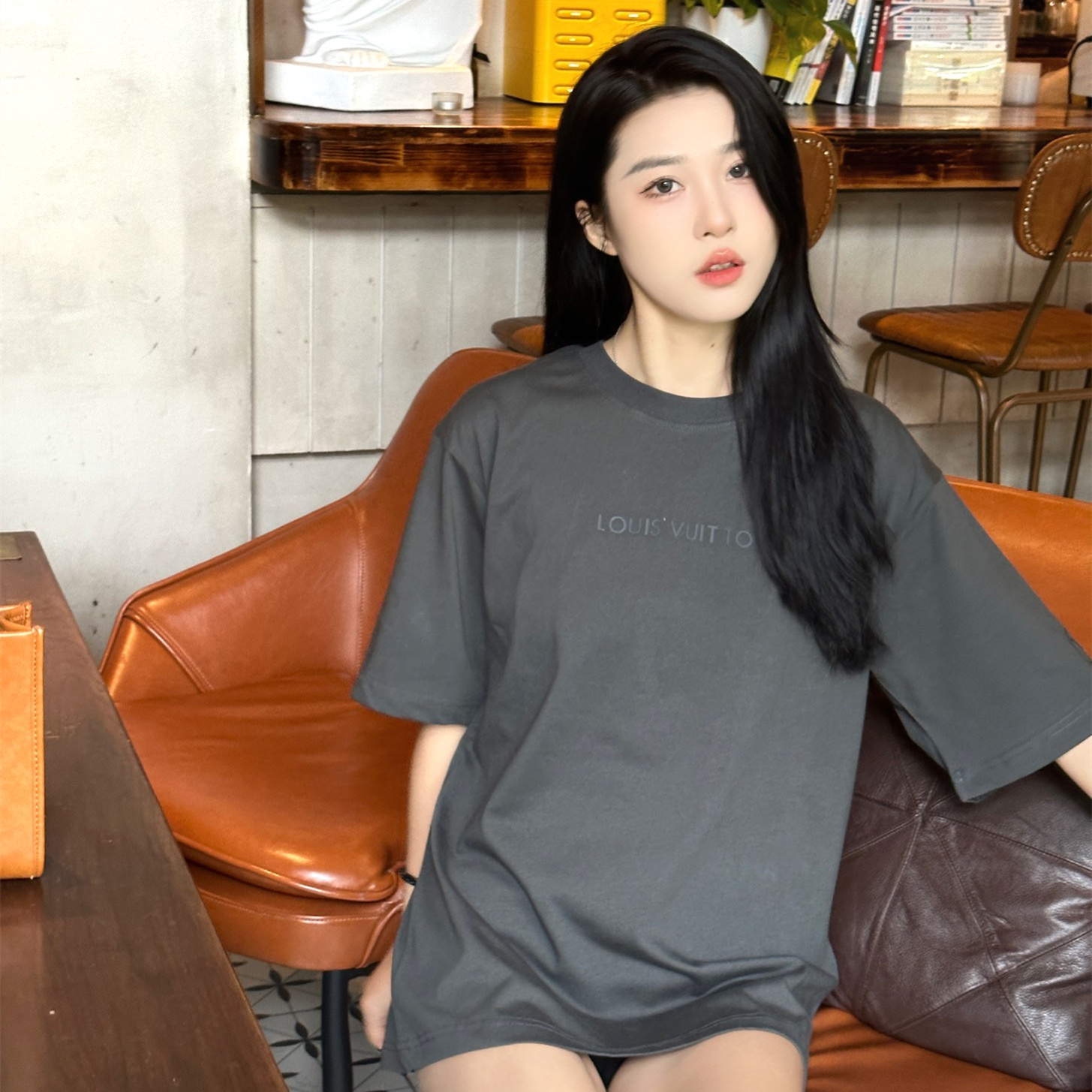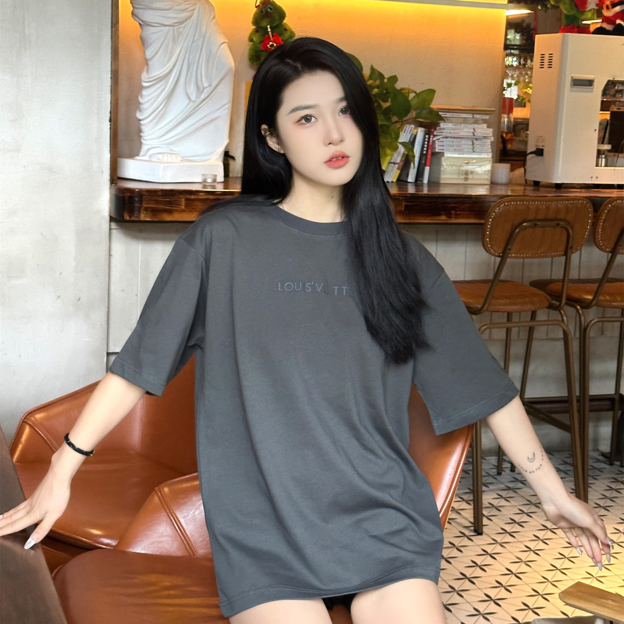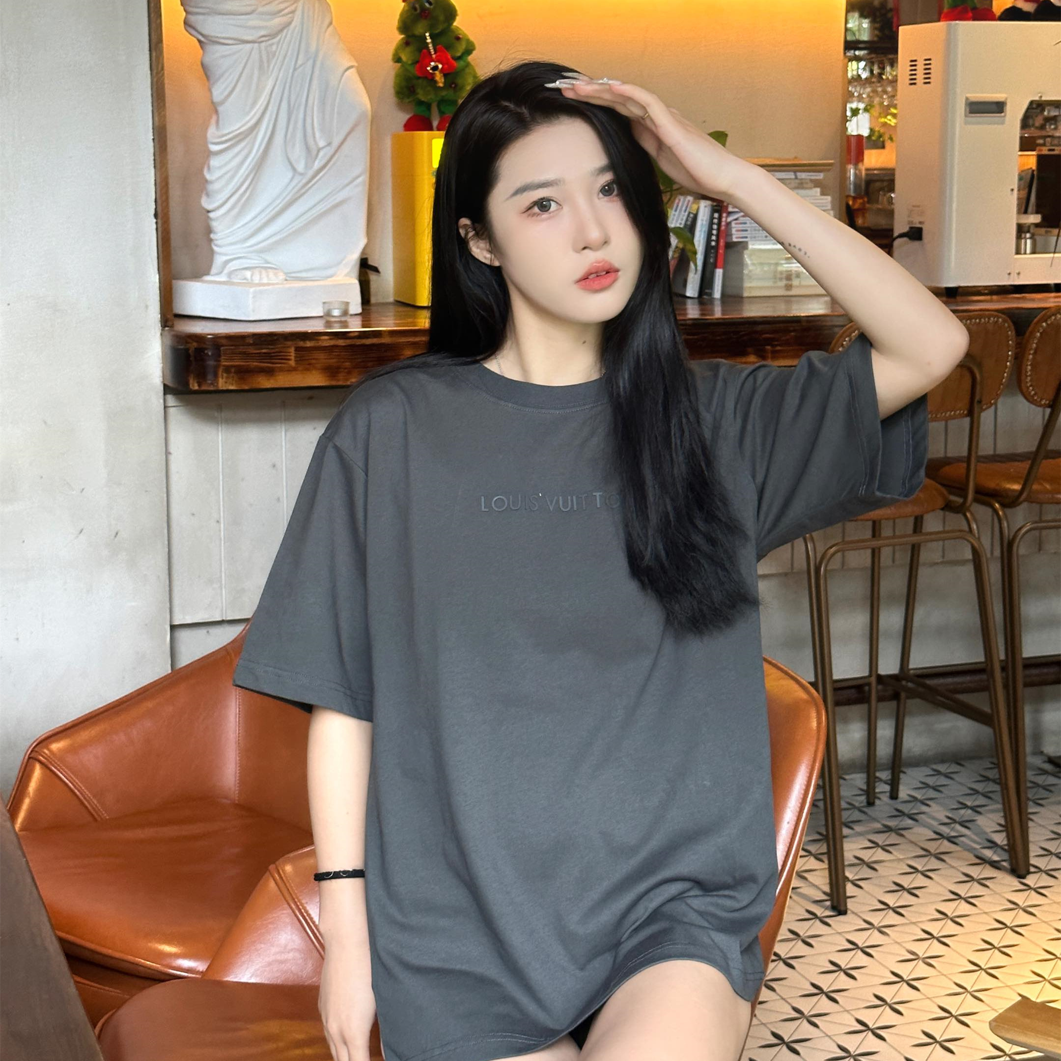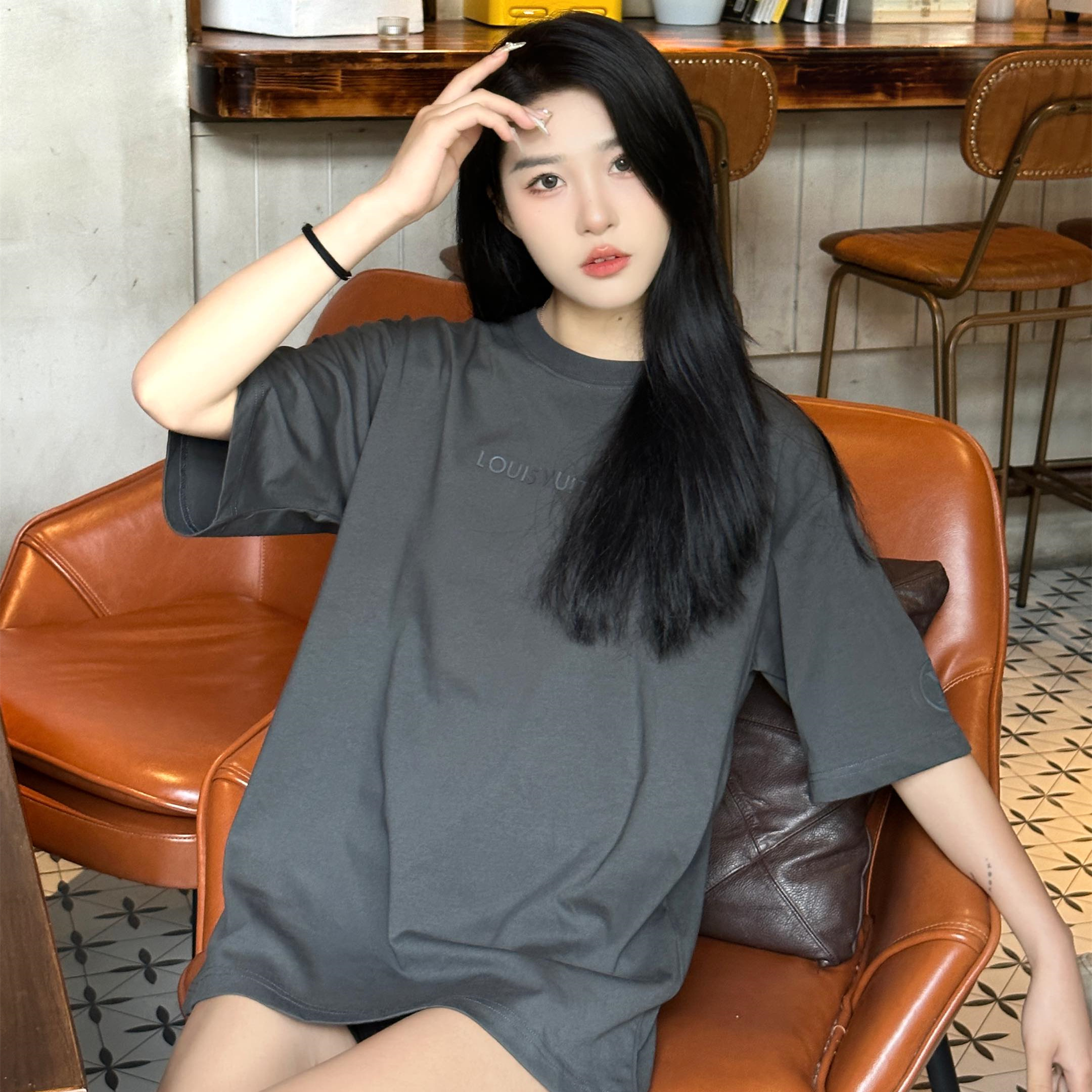 高仿LV*1AFR0046壓膠字母短袖T恤深灰