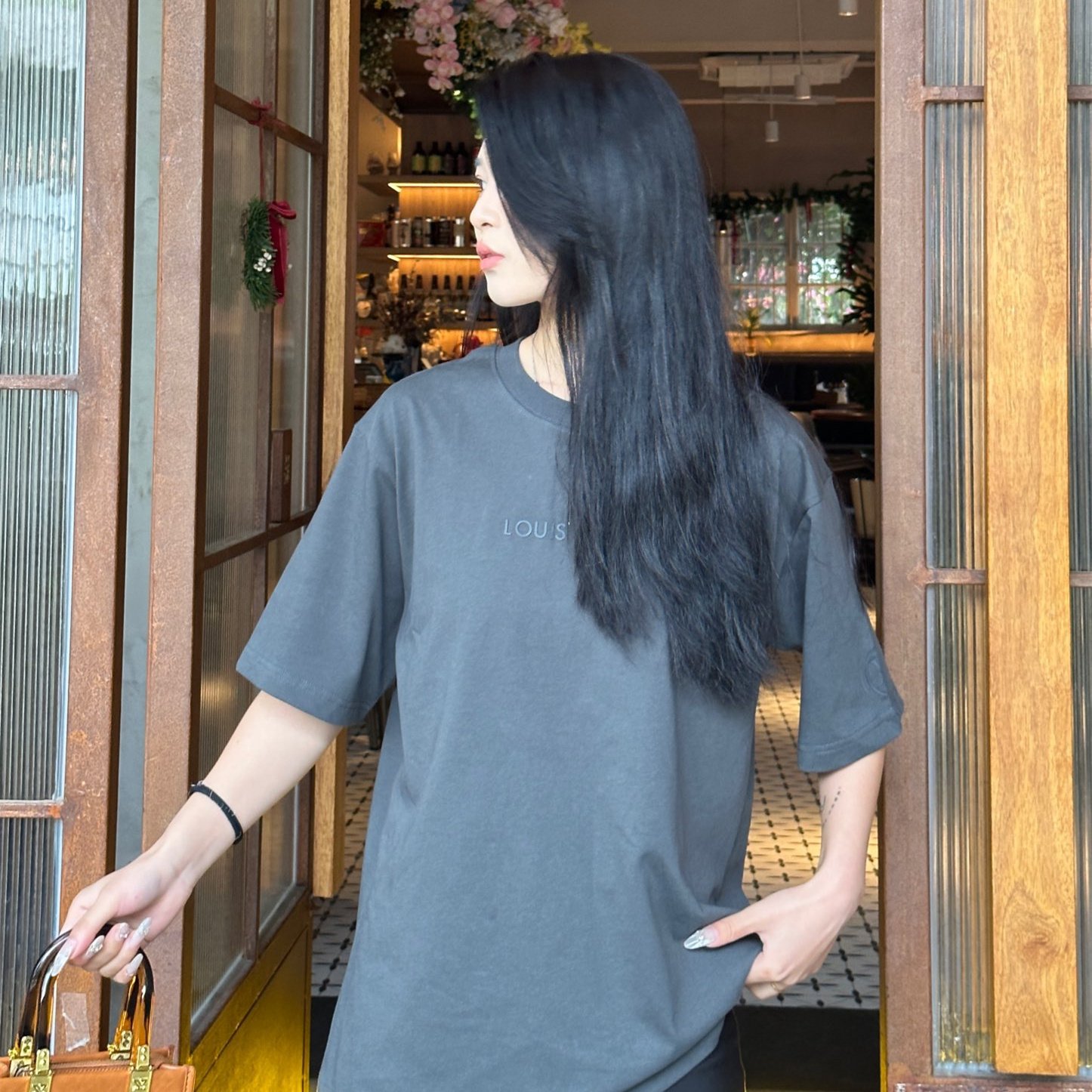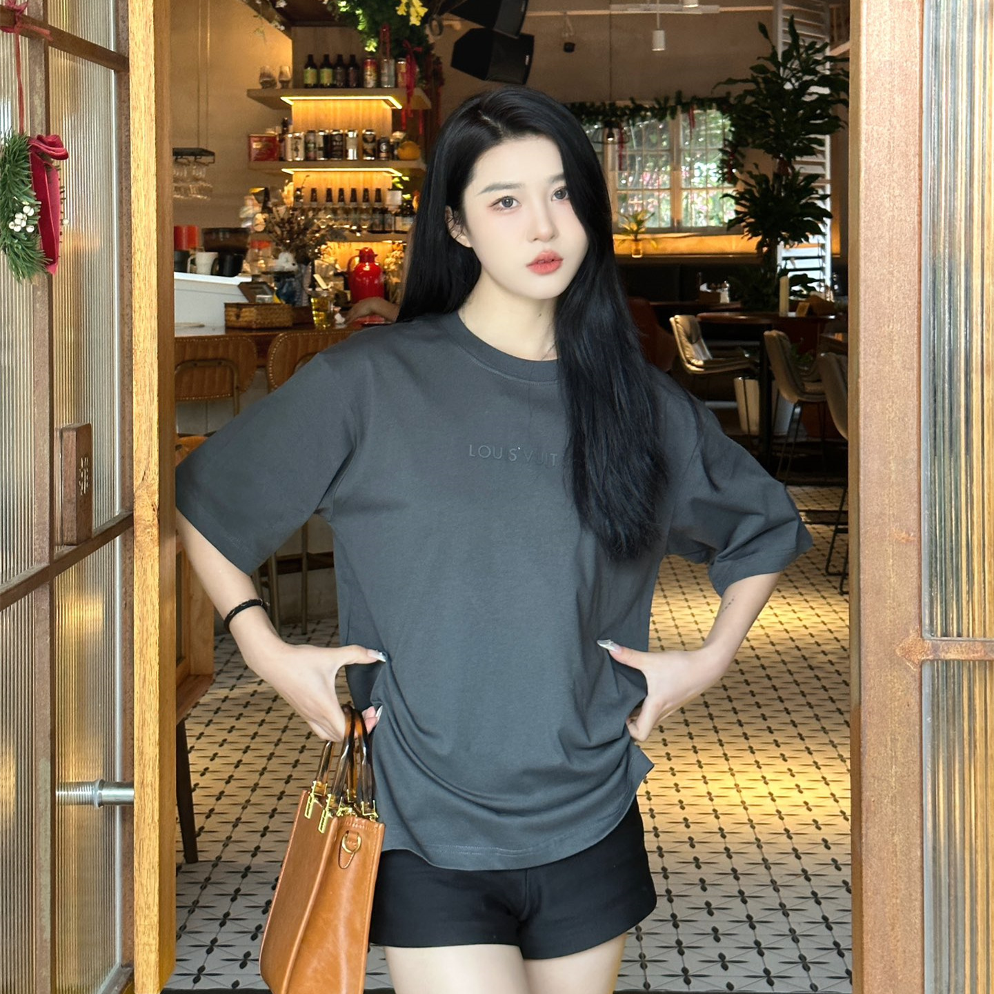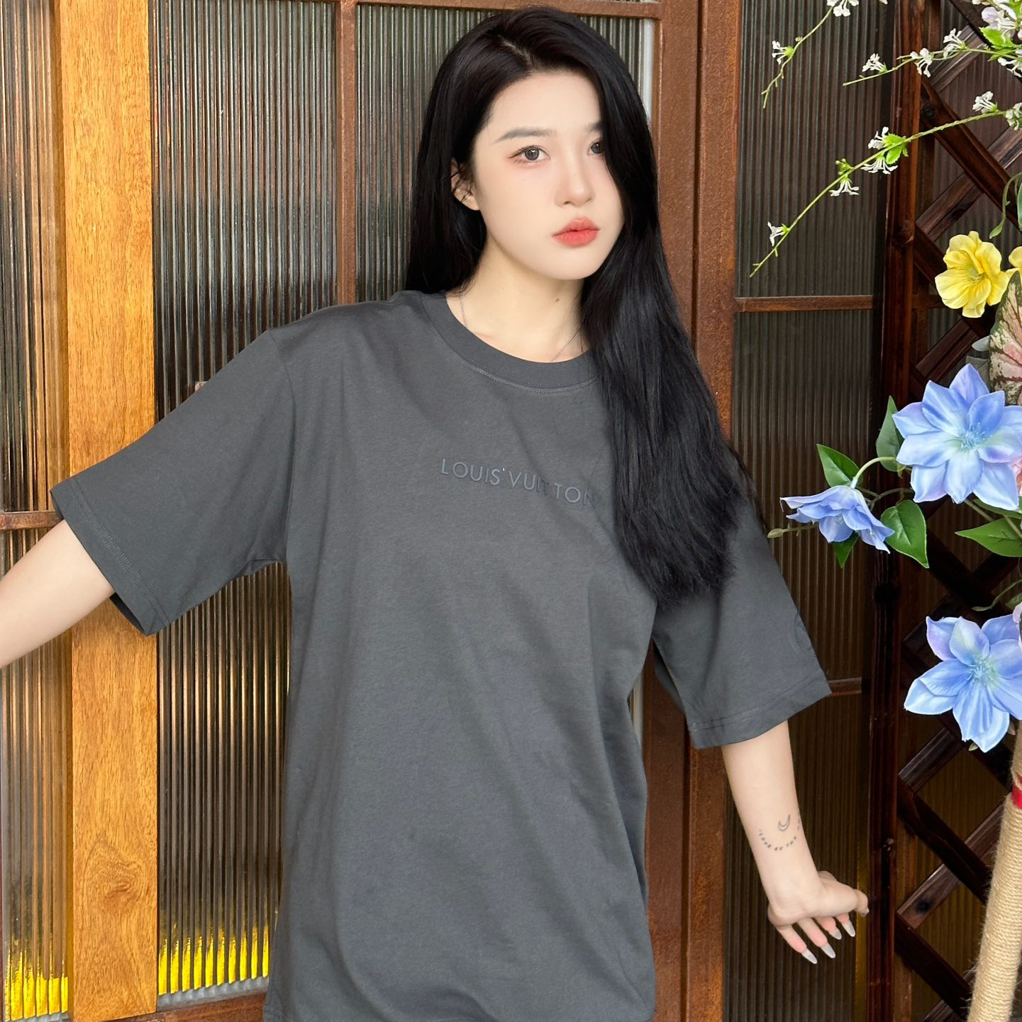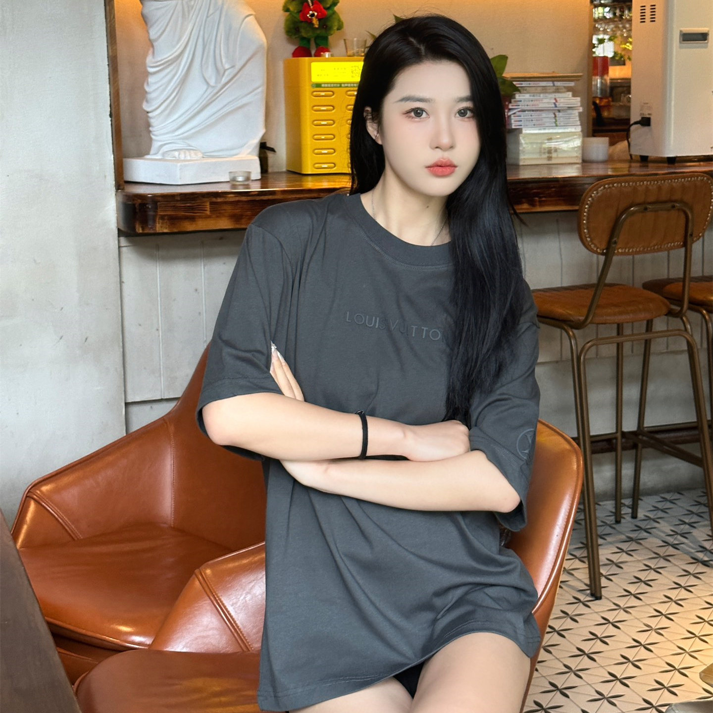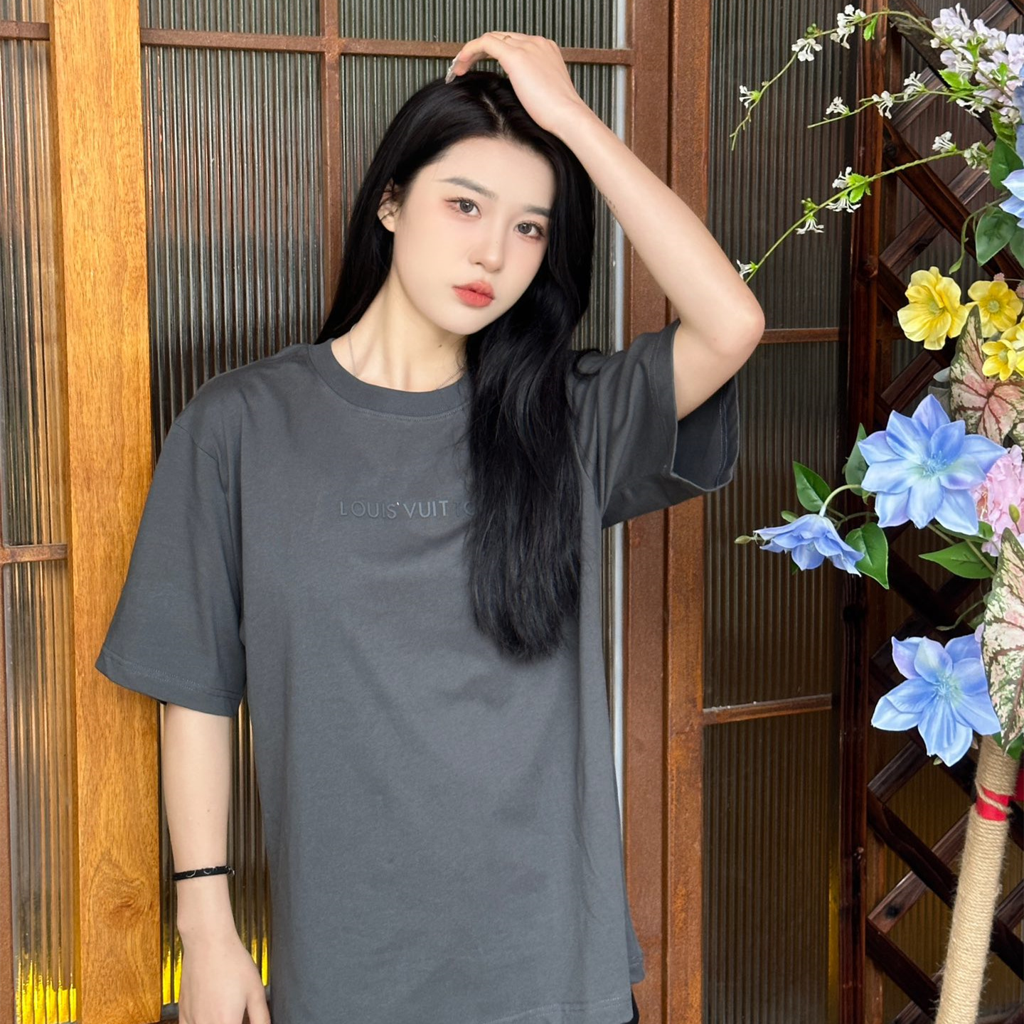 高仿LV*1AFR0046壓膠字母短袖T恤深灰
