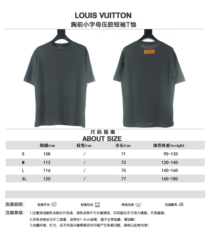 LOUIS VUITTON/路易威登胸前小字母壓膠短袖T恤.男女同款全新美學靈感趣味設計,渠道性質精品.讓整體造型設計更加優雅時尚,今夏最火繫列,無數明星潮人追捧.裁剪工藝細節處理工整為玩味時尚增添色彩!工整細致.合身的版型構造更是獨具匠心,上身不僅有著出彩的辨識度更是減齡青春.一款穿著意義還有穿搭性能都很極致的款式,絢麗的色繫調配,此款的工藝必然也是極致非凡,上身的舒適度絕對足夠的強大,也是奢品本質的一種彰顯.柔軟輕薄,觸感更是極端撩人,透氣性能十分之強大,尤為適合春夏季節的穿搭所需,妥妥的穿著享受,併且各處的細節以及織帶的工藝都是盡善盡美,更顯高級感.
