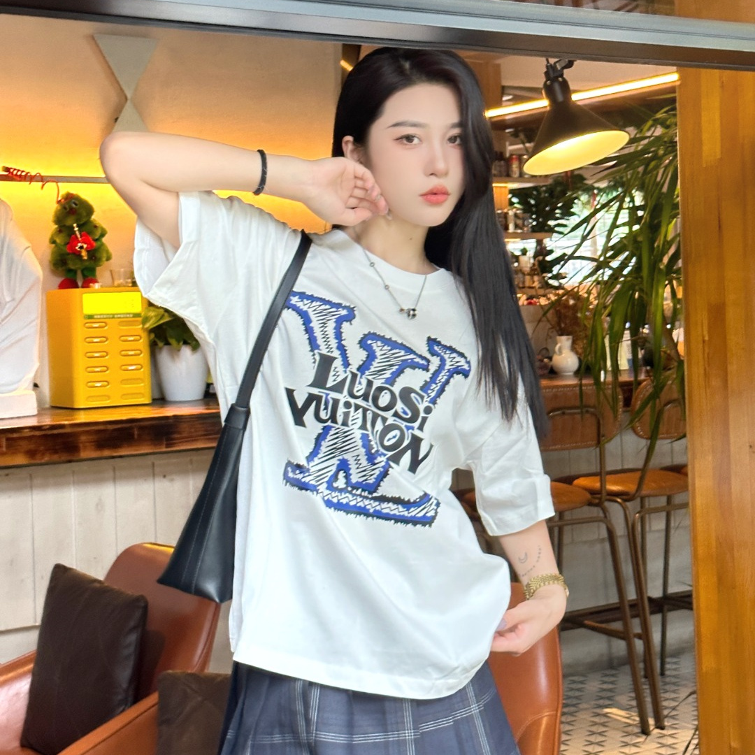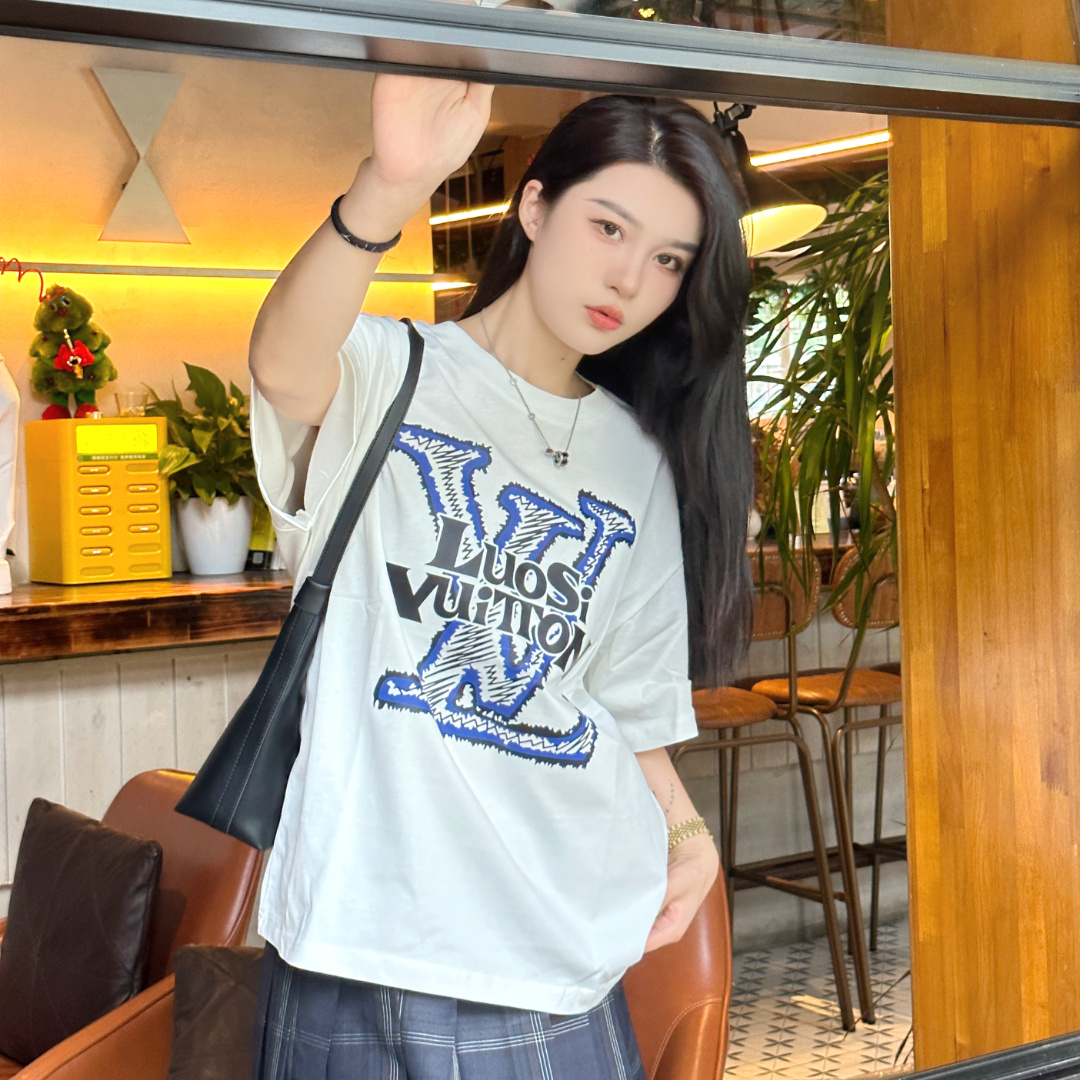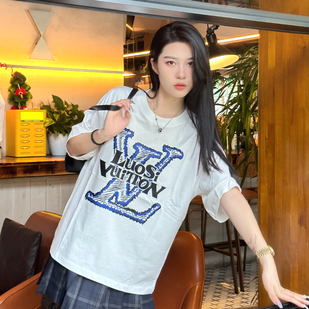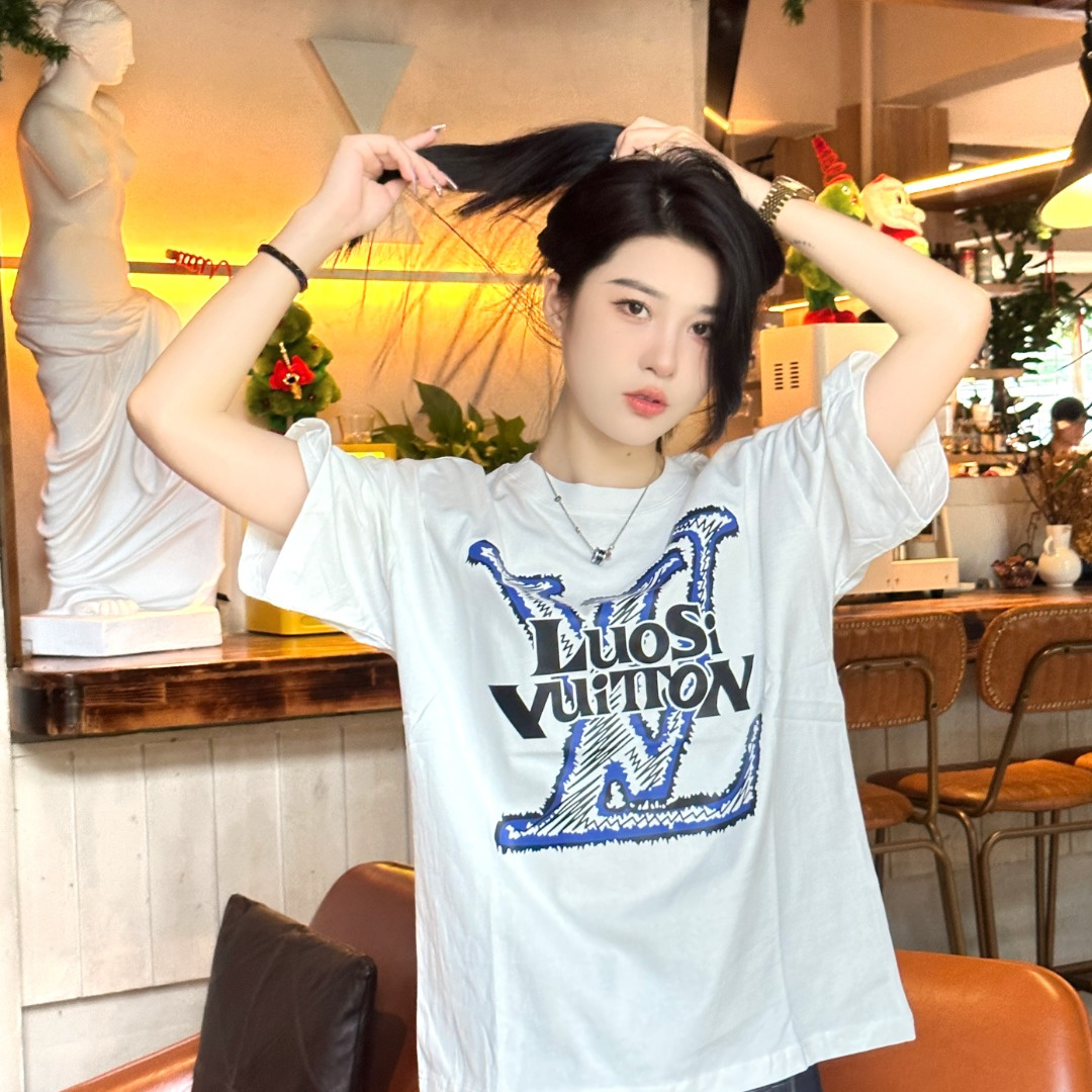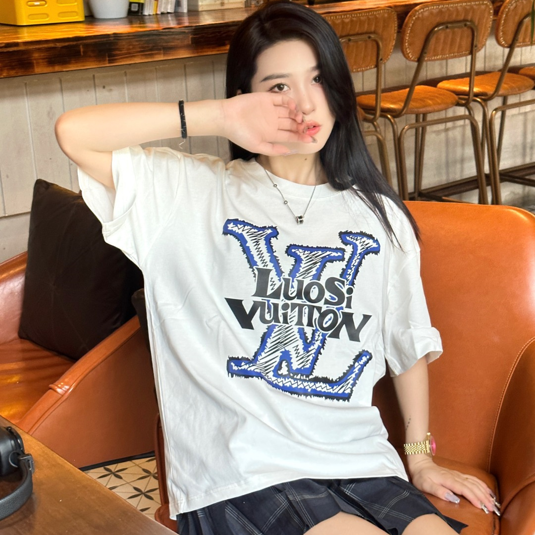 高仿LV*1AFR0048塗層LOGO短袖T恤白色