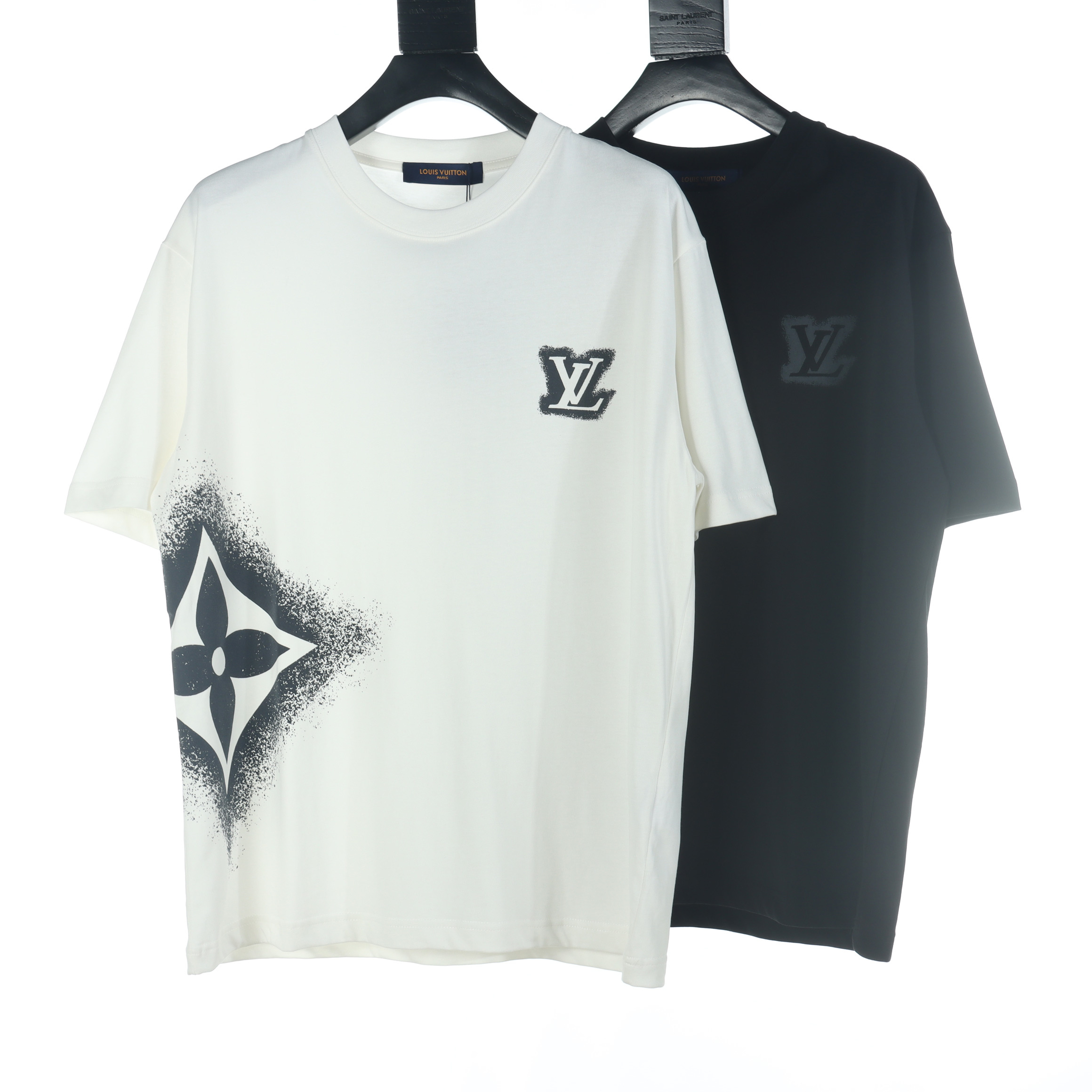 高仿LV*1AFR0051碎墨LOGO短袖T恤黑色
