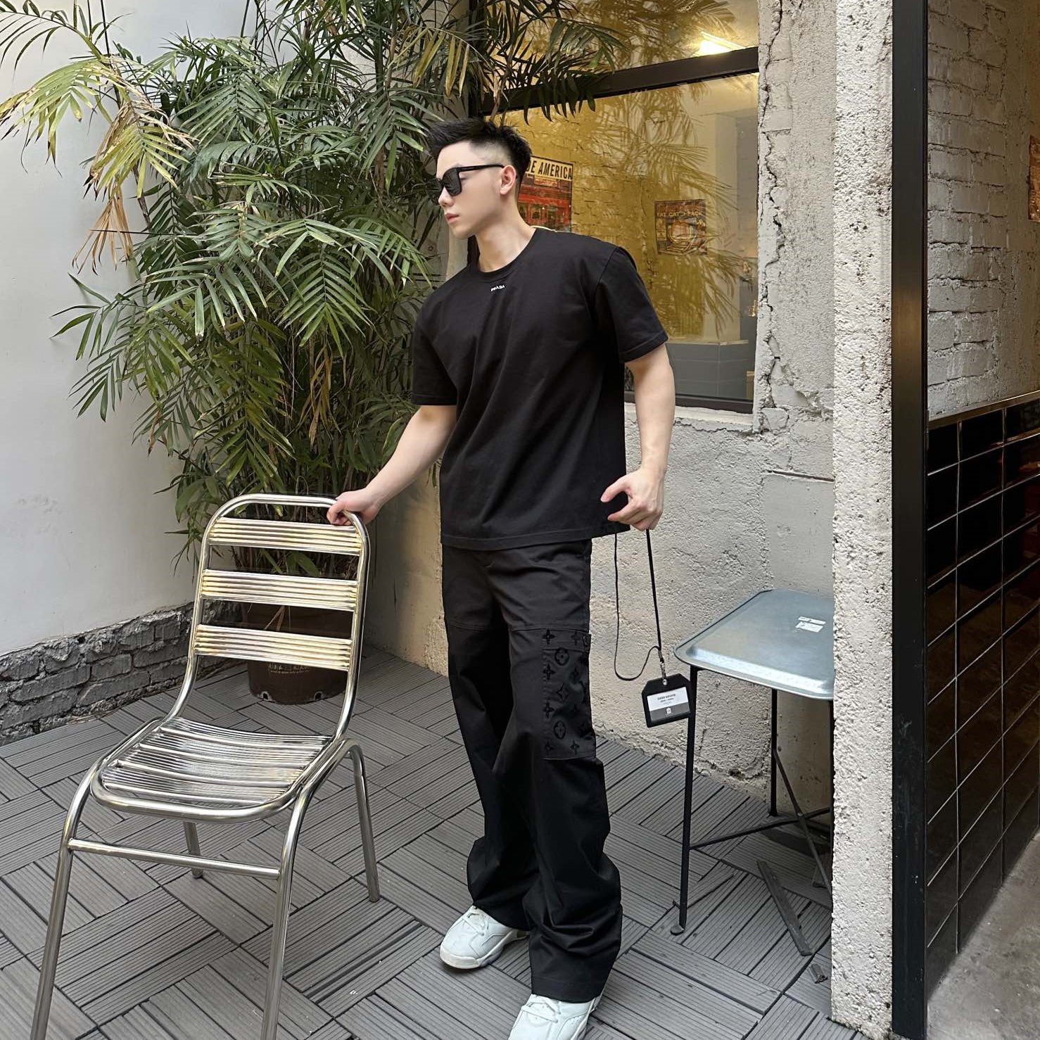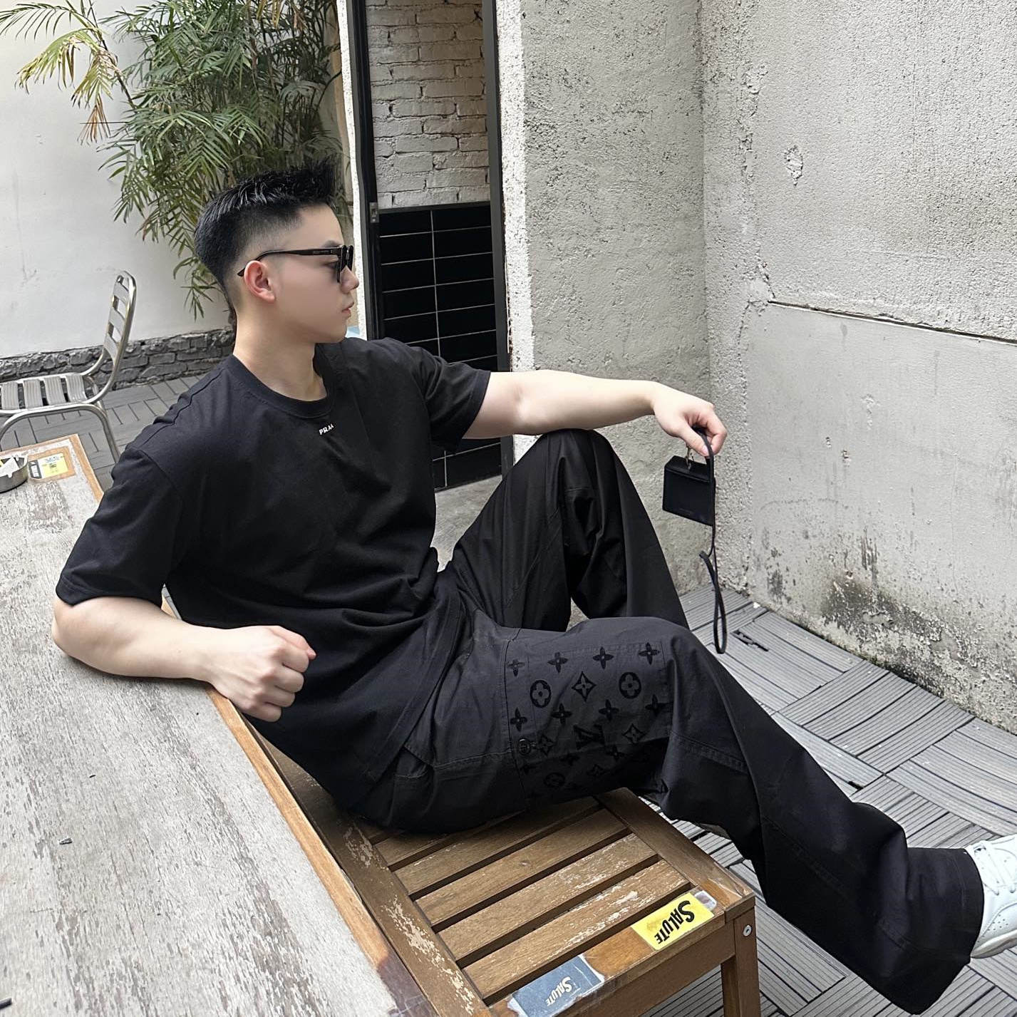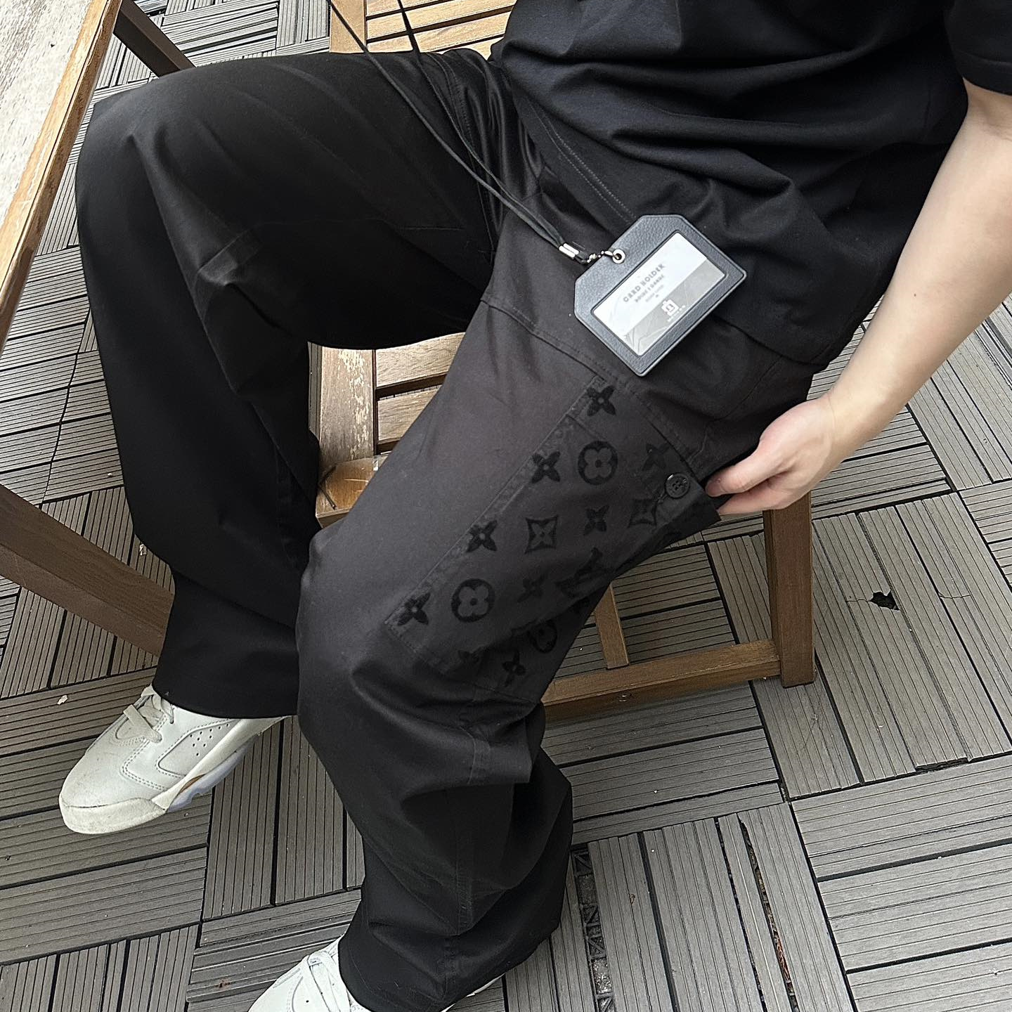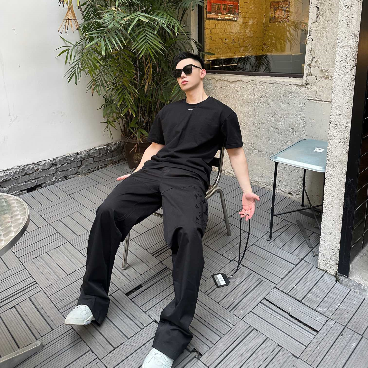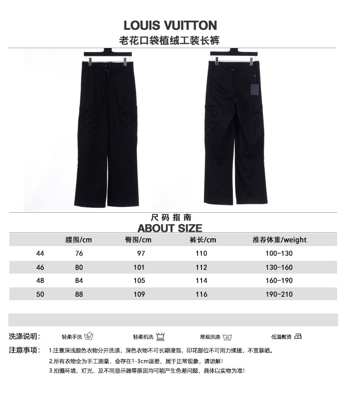LOUIS VUITTON24新款 老花口袋植絨工裝長褲.采用270克精疏棉斜紋布,進口機3D植絨印花,通過纖維短絨植絨圖案粘著到織物表面,做工繁瑣覆雜,貼袋處立體裁剪通過分割折疊後裁剪出布樣,中孝洗,寬松版型.