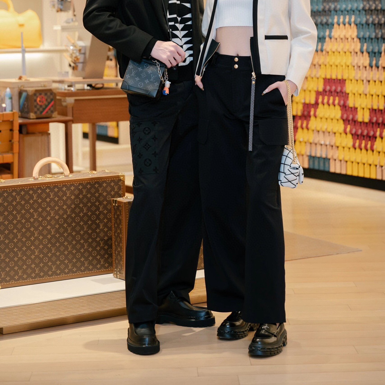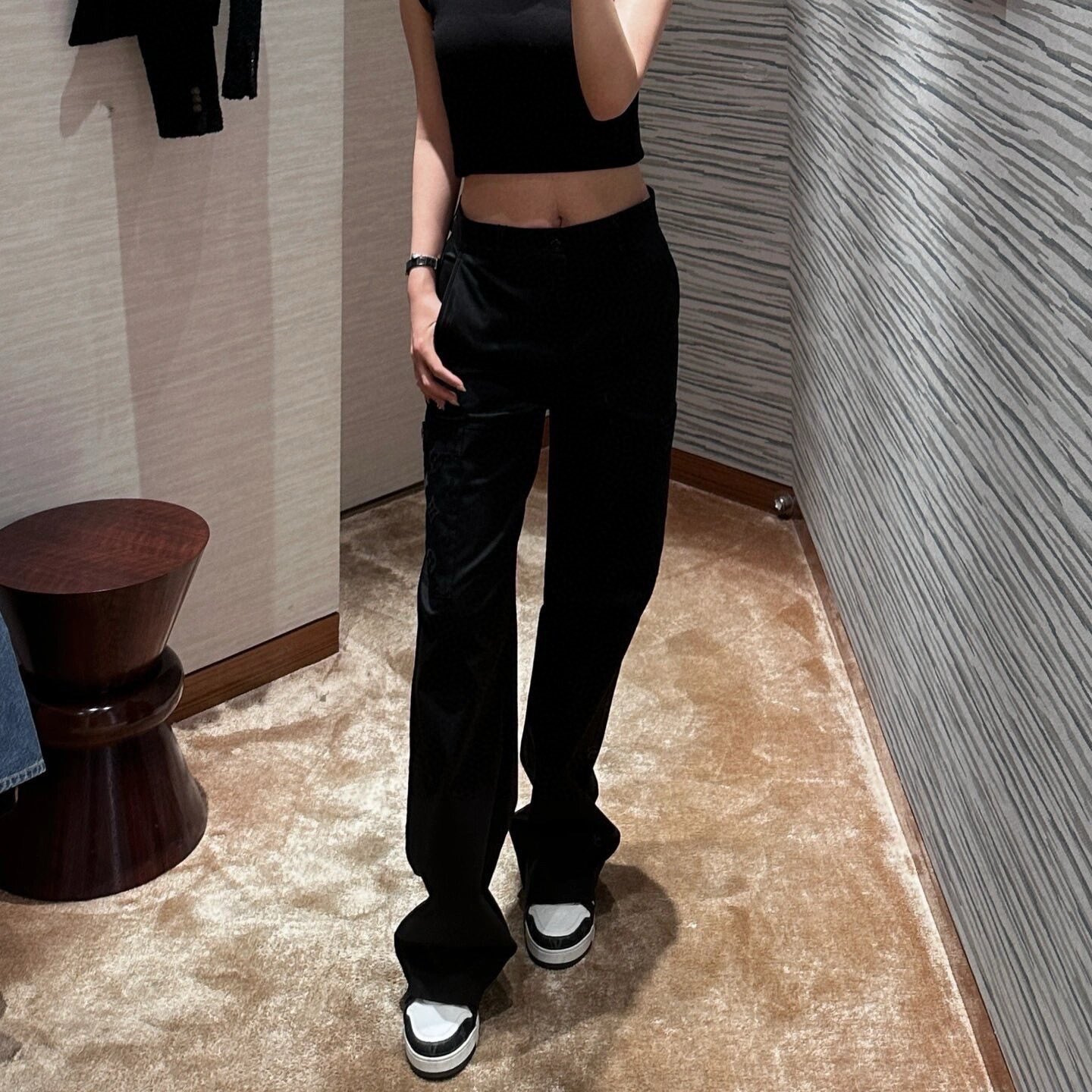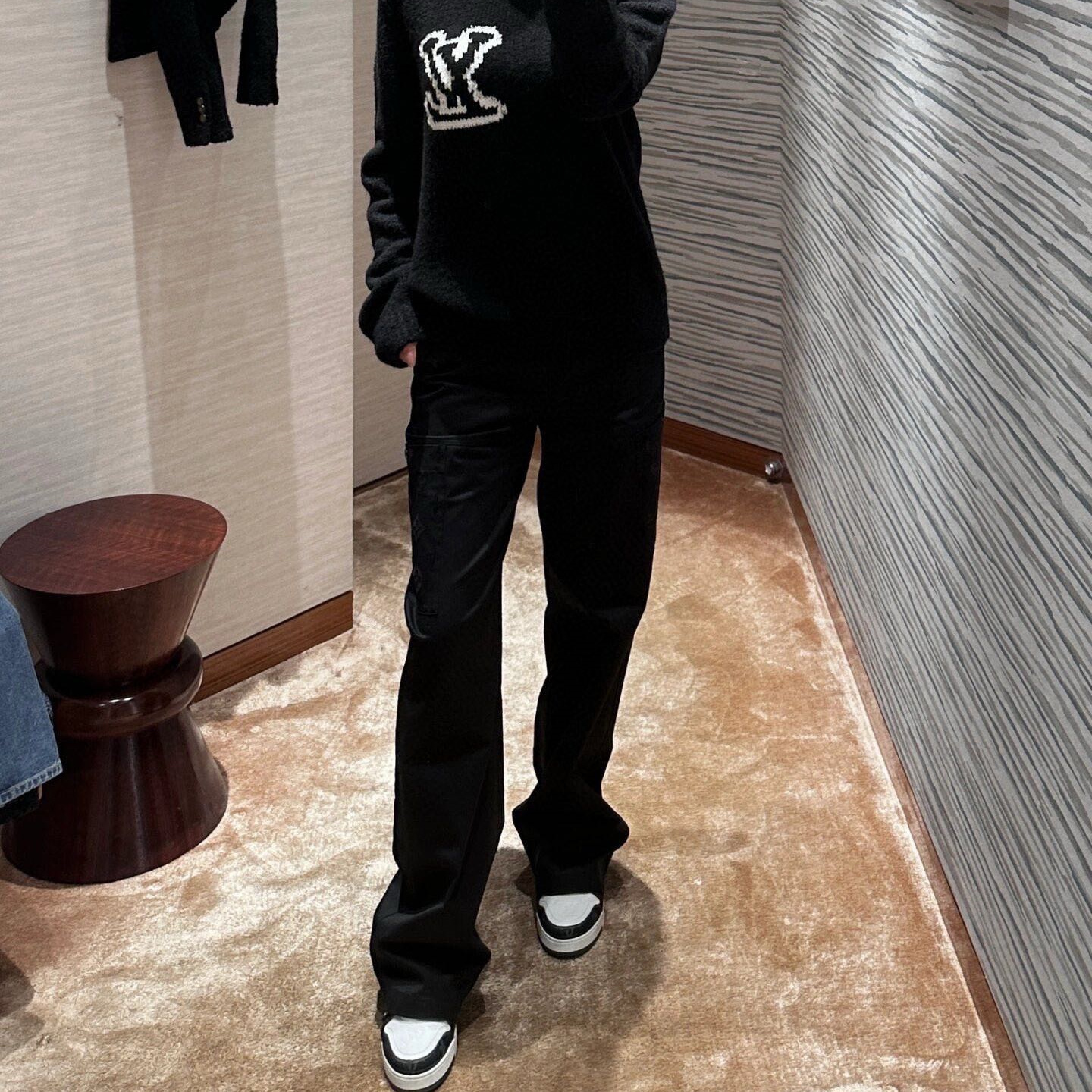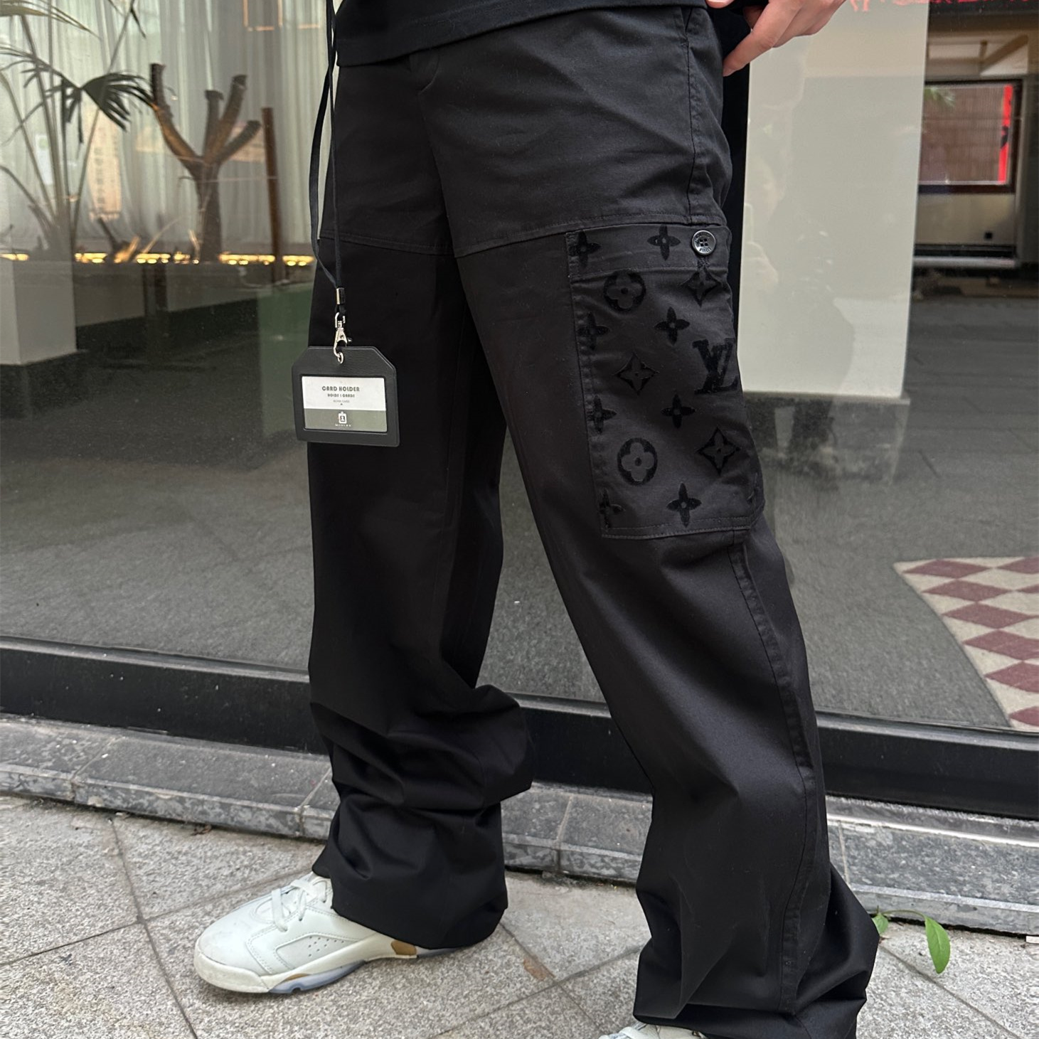 高仿LV*SS24系列1AFATD純色老花植絨工裝褲