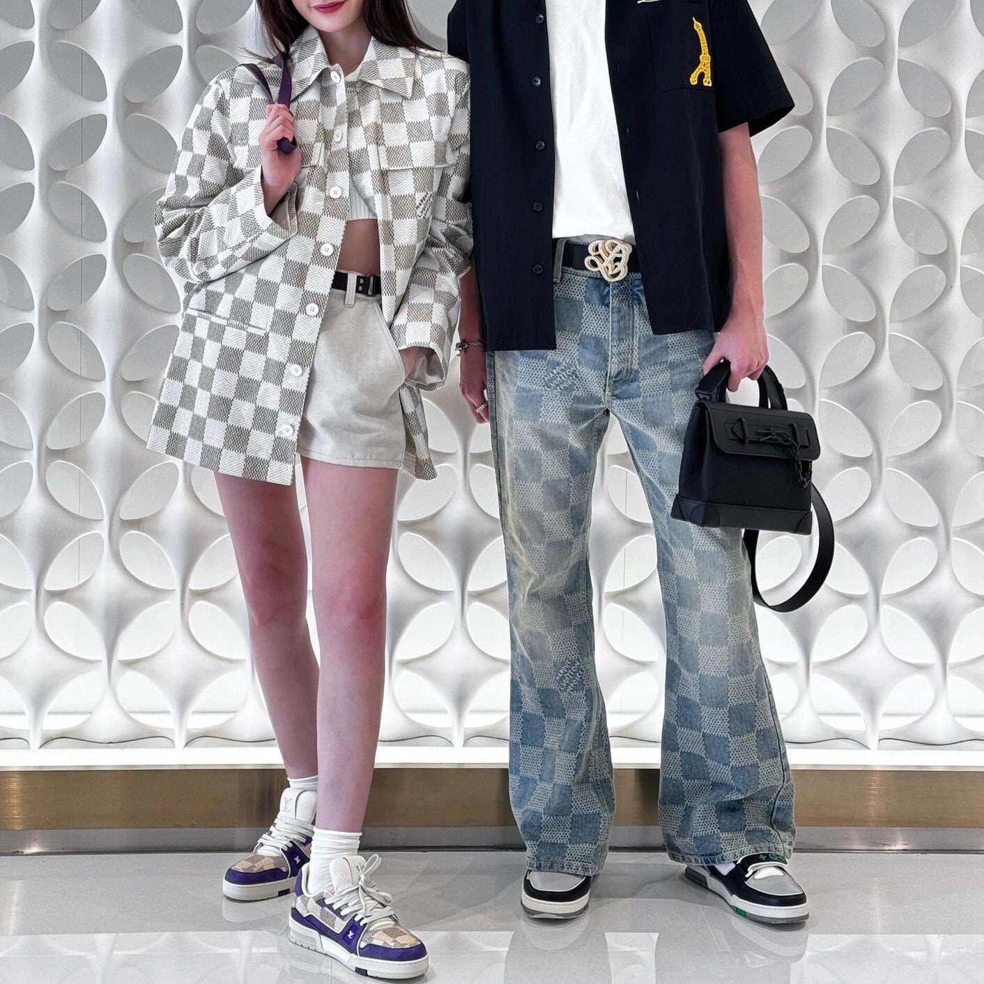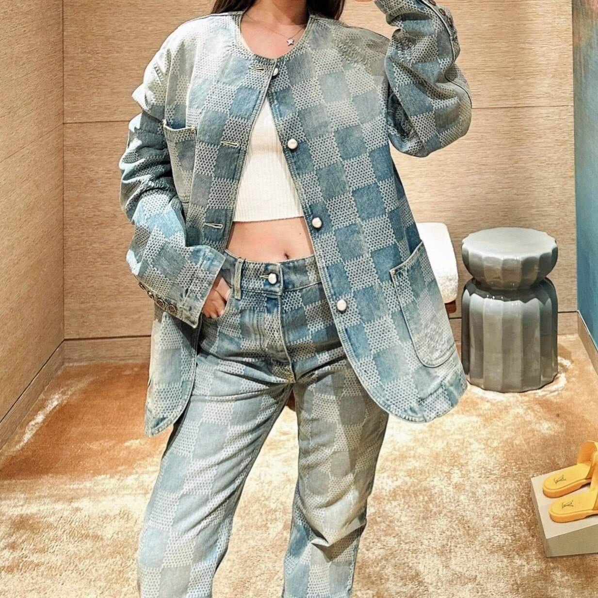 高仿LV*Damier系列1AFI22棋盤格牛仔長褲